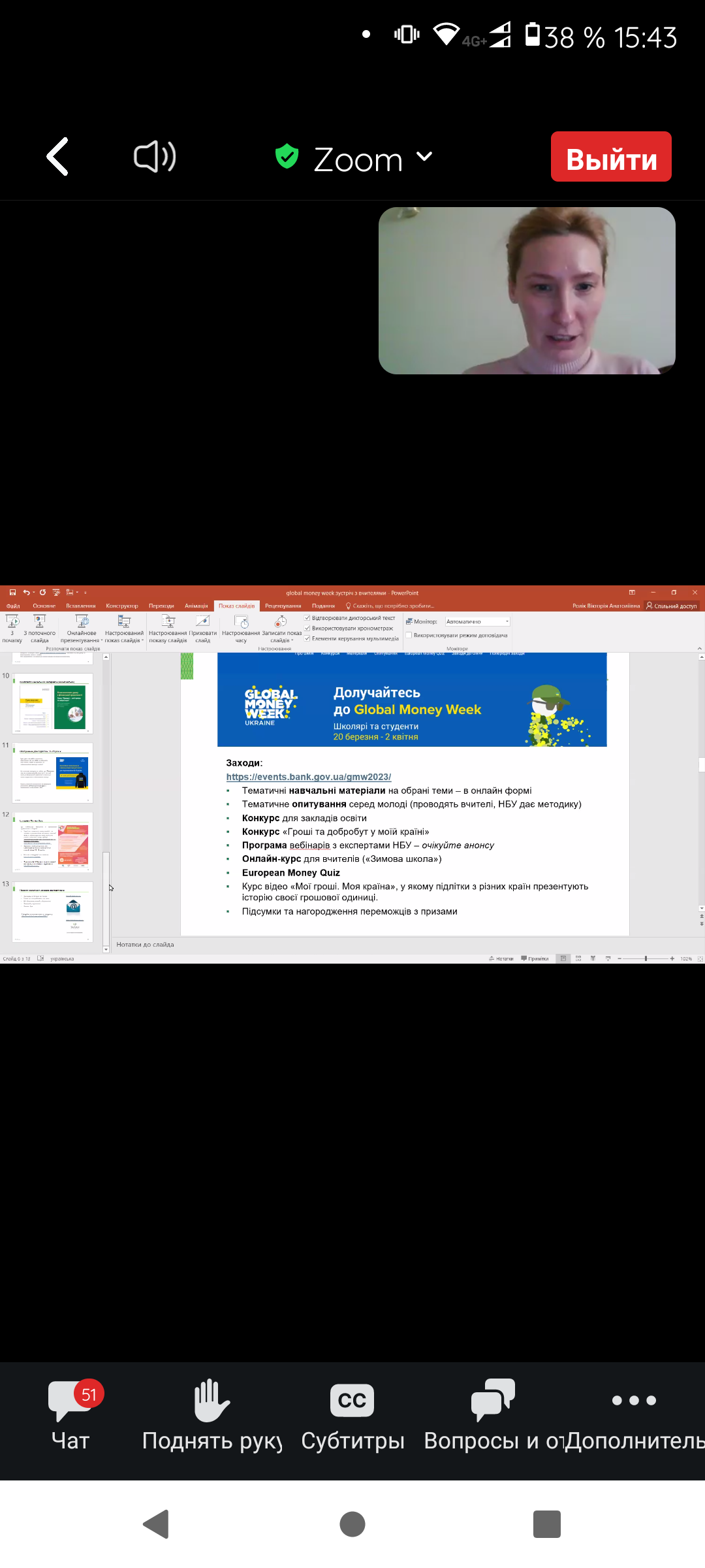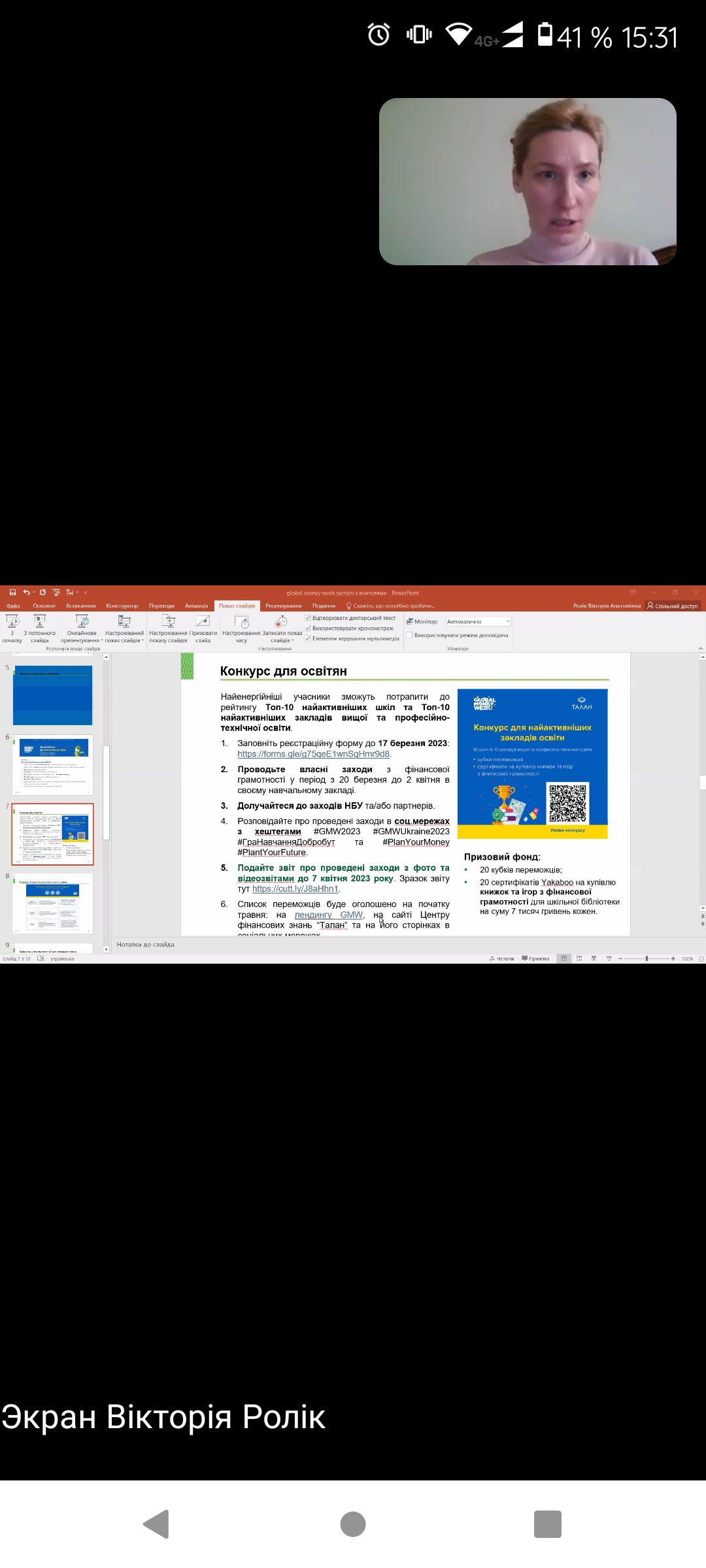 7 квітня 2023 року Начальник відділу організації практики та позанавчальної роботи МАУП- Куртакова Ганна Олександрівна з метою розширення інформації щодо проведення та організації конкурсу “Global Money Week” в рамках відзначення Всесвітнього тижня грошей долучилася до онлайн-зустрічі з організаторами .