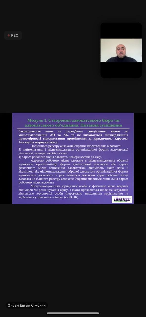 У ході обговорення розглянули критерії, недоліки та переваги вибору організаційної форми адвокатської діяльності; особливості здійснення адвокатської діяльності в формах адвокатського бюро чи адвокатського об'єднання; питання взаємодії, партнерства та врегулювання діяльності адвокатів у складі АБ та АО; шляхи законодавчого удосконалення організаційних форм адвокатської діяльності тощо.