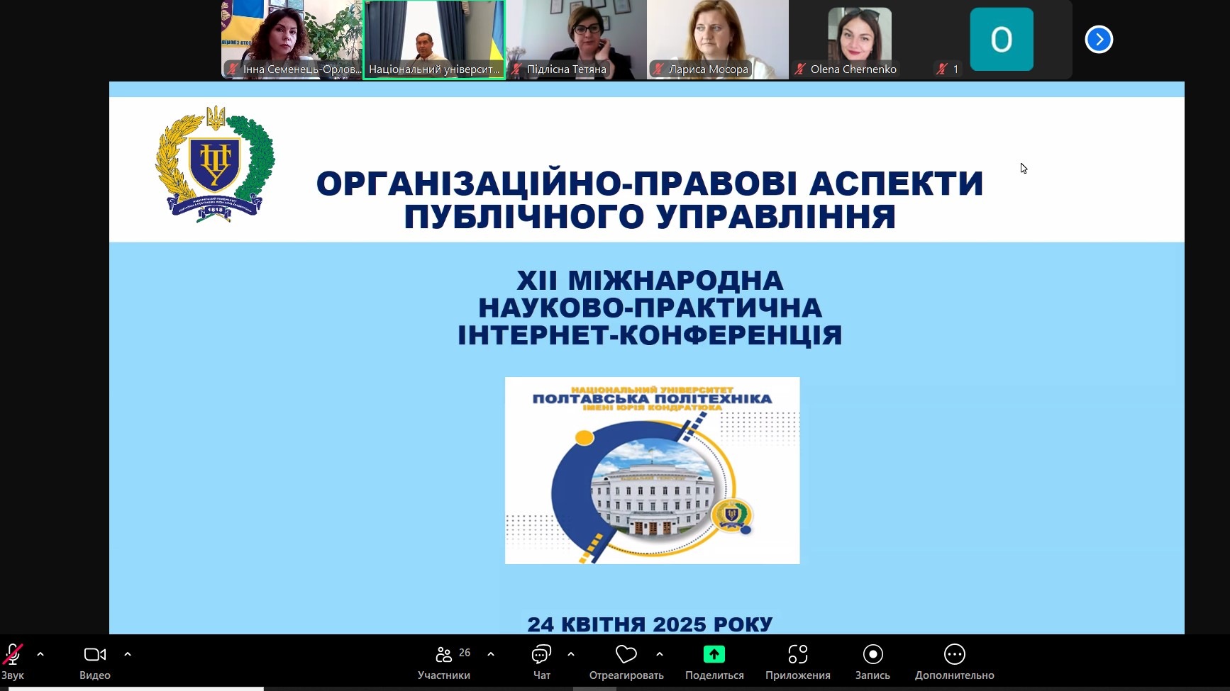 Навчально-науковий інститут управління, економіки та бізнесу МАУП уже третій рік поспіль виступає співорганізатором XII Міжнародної науково-практичної конференції «Організаційно-правові аспекти публічного управління» у Полтавській політехніці імені Юрія Кондратюка. Цьогоріч з вітальним словом на відкритті конференції виступила завідувач кафедри публічного адміністрування, д.держ.упр., проф. Семенець-Орлова І.А. Активними учасниками секційних засідань були докторанти та аспіранти ННІУЕБ. Вдячні шановним колегам за актуальний та важливий щорічний захід.