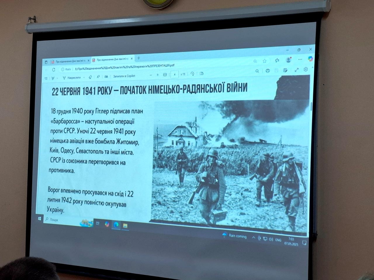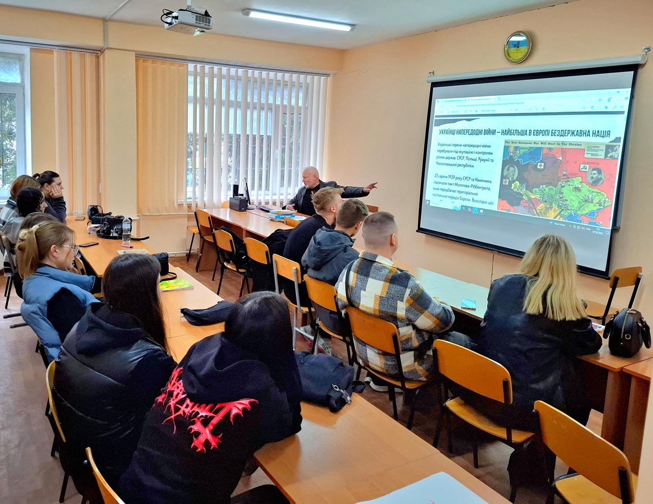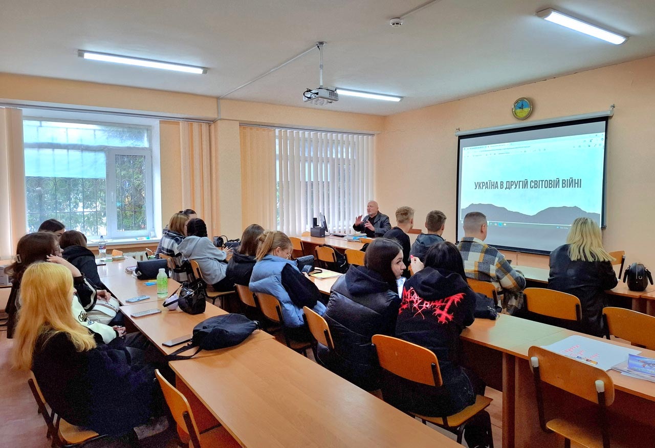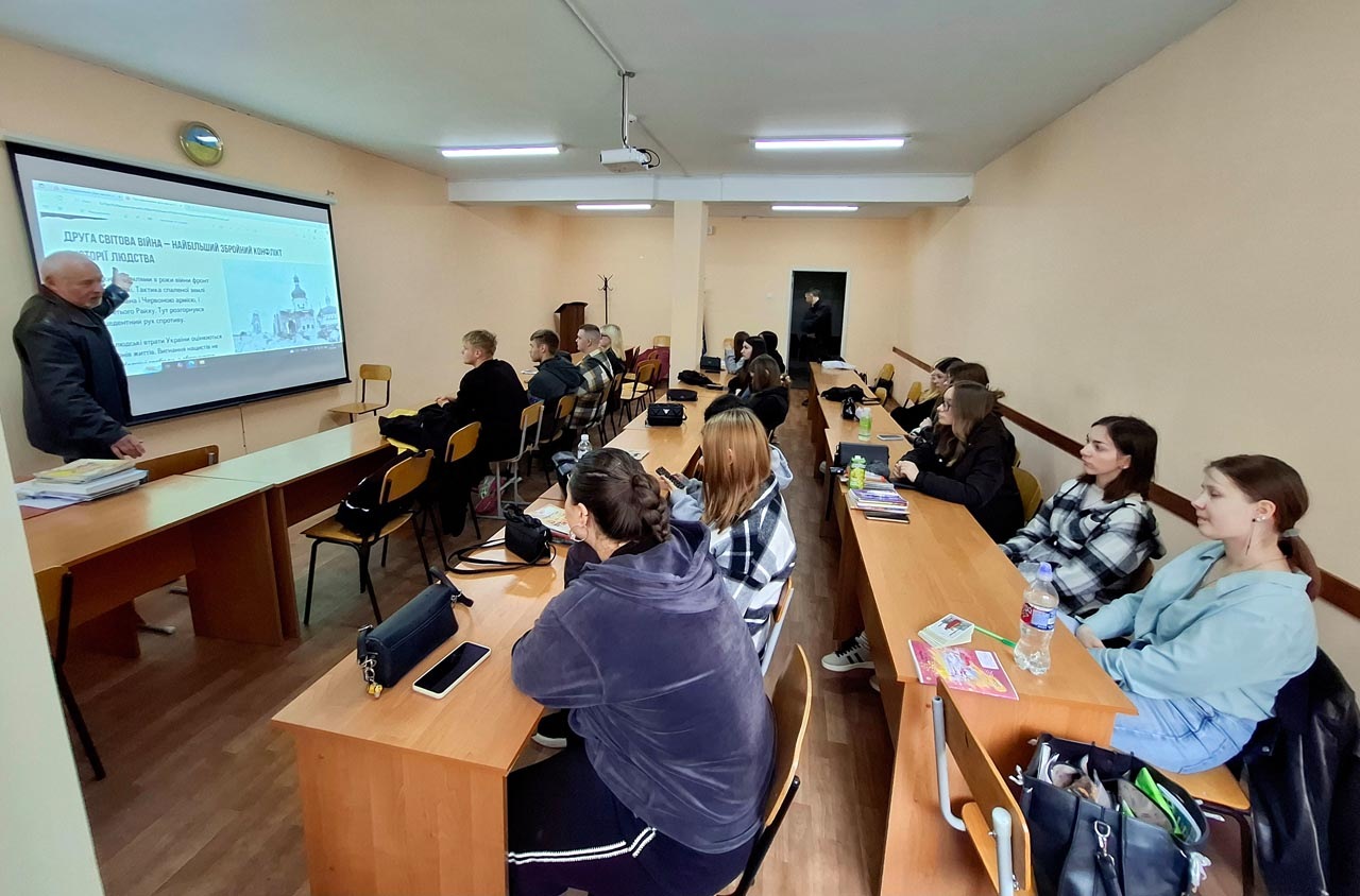 Разом зі студентами було обговорено ключові аспекти Другої світової війни: причини її початку, хід воєнних подій, наслідки для України та її народу. Учасники згадали про подвиг тих, хто протистояв нацизму та здобував перемогу в жорстокій війні. Особлива увага була приділена втратам, яких зазнали українці та інші народи, що проживали на території нашої країни впродовж 1939–1945 років.