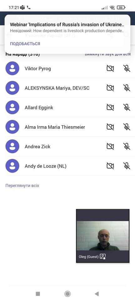 Під час вебінару були визначені основні наслідки поточного конфлікту в Україні на міжнародні агропродовольчі ринки та продовольчу безпеку з точки зору України, Нідерландів, ЄС та Близького Сходу.