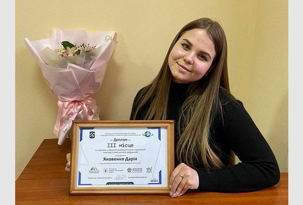 Студентка 3 курсу кафедри публічного адміністрування Дарія Яковенко здобула перемогу у Відкритій студентській олімпіаді з електронного врядування (науковий керівник: доктор наук з державного управління Семенець-Орлова Інна Андріївна).