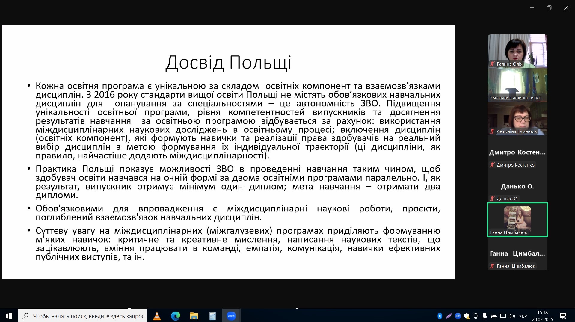 Відбувся науково-практичний семінар «Досвід розробки та ПЕРСПЕКТИВИ запровадження Міждисциплінарних освітніх програм кафедрою економіки та управління ХмельницькоГО інститутУ МАУП» модератором якого виступила завідувач кафедри економіки та управління, кандидат економічних наук Ганна Цимбалюк.