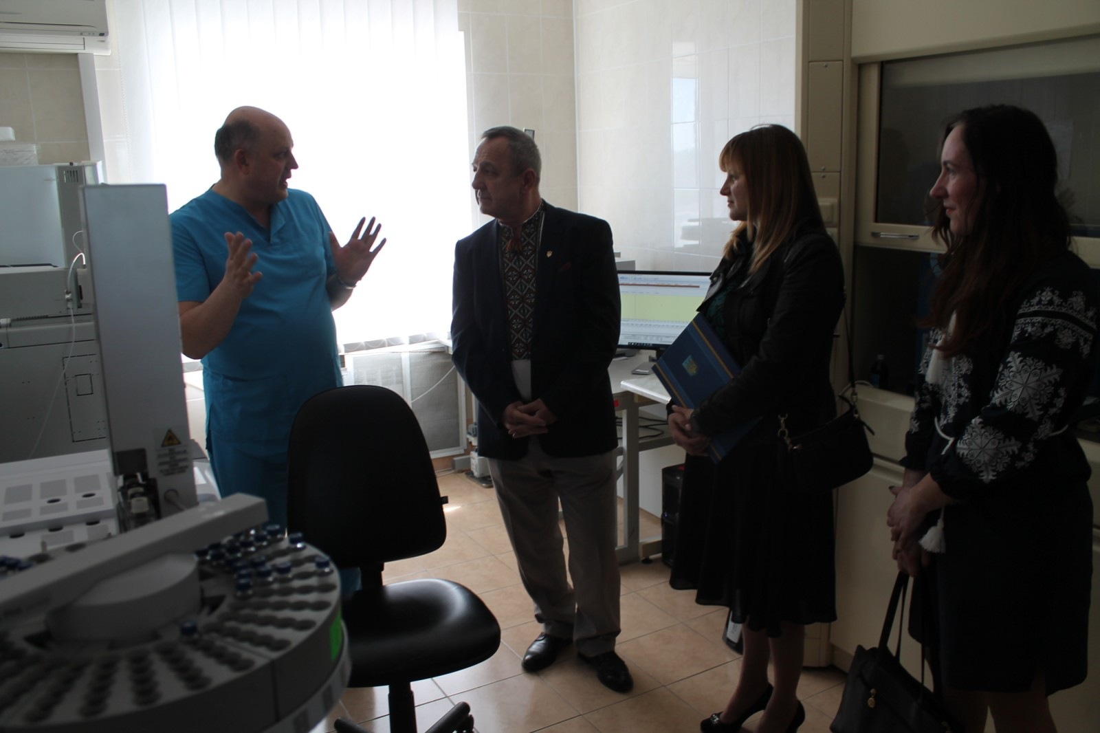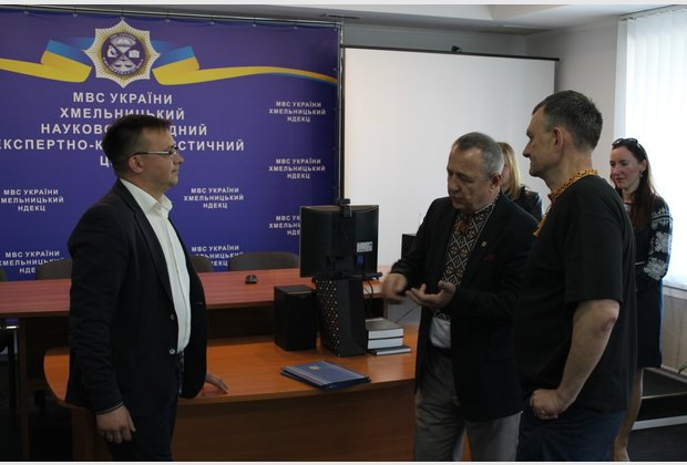 Директор Центру Андрій Леонідович Ганзюк та заступник директора Олег Вікторович Кравчук провели екскурсію лабораторіями Центру та розповіли директору Інституту Білому Леоніду Григоровичу, заступниці директора Парандій Валентині Олександрівні та доценту кафедри права та правоохоронної діяльності Авсієвич Аллі Валеріївні про можливості подальшої співпраці в навчальному, науково-практичному та науково-дослідницькому напрямках.