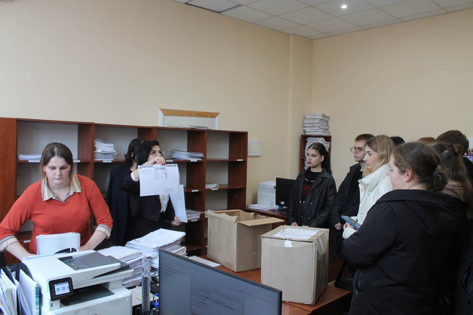 Під час відвідування канцелярії Шостого ААС, начальник відділу документообігу та контролю (канцелярія) Антоніна Коваленко описала відвідувачам процес проходження судової справи відділами суду, а також детально розповіла, що входить до матеріалів судової справи.