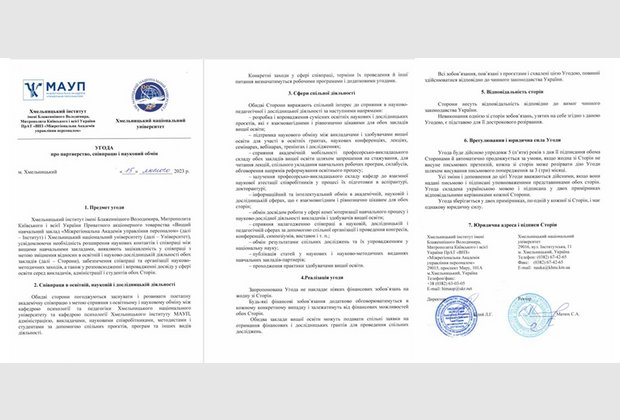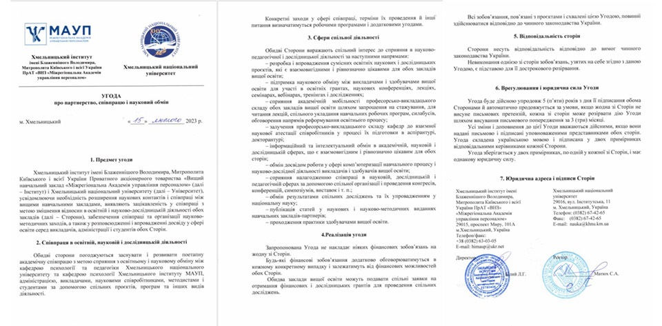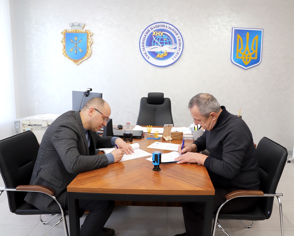 Угоду підписали директор Хмельницького інститут МАУП Леонід Білий та ректор Хмельницького національного університету Матюх Сергій Анатолійович.