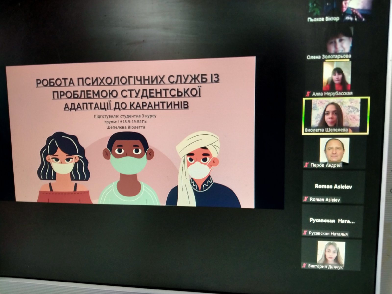 В рамках наукової активності 4 здобувача вищої освіти продемонстрували свої наукові дослідження перед Конкурсною комісією у формі презентації. Теми досліджень стосуються превенції домашнього насильства, профілактики використання психоактивних речовин у молодіжному середовищі, нетипових форм державного правління, роботи психологічних служб в умовах карантину, отже - права і психології.