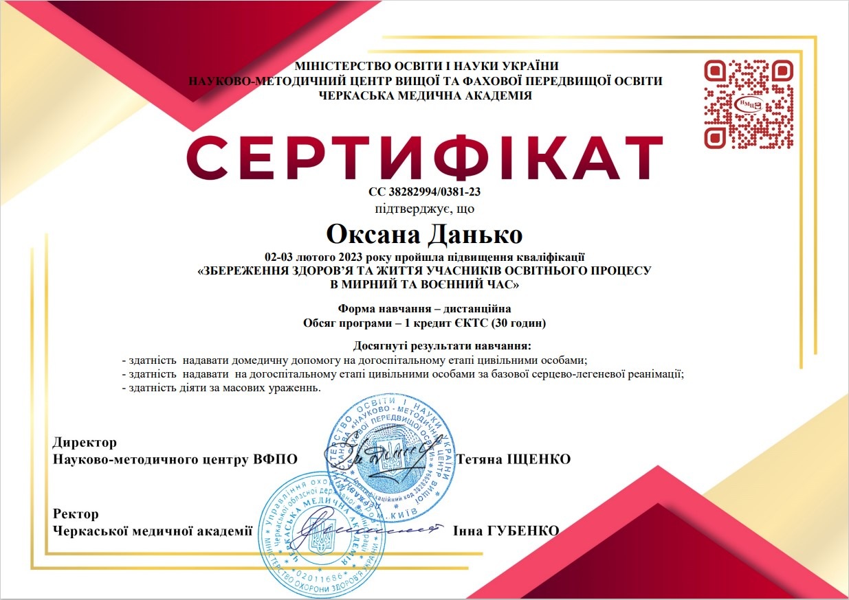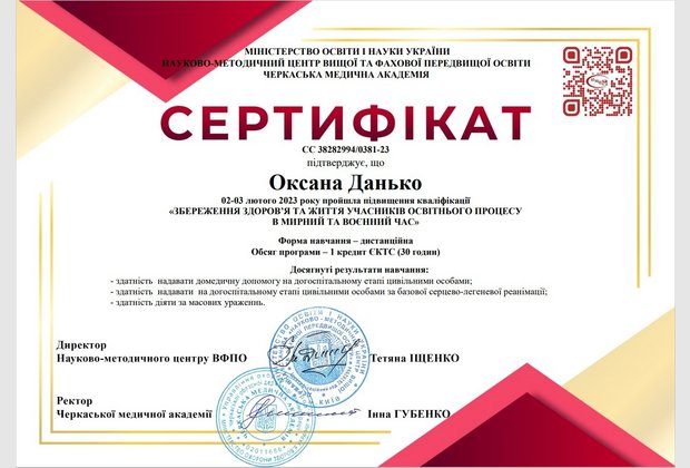 По завершенню програми і успішного проходження тестування учасники вебінару отримали сертифікати про підвищення кваліфікації обсягом – 30 годин (1кредит ЄКТС).