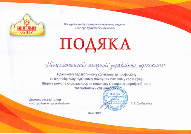 Подяка від видання "Все про бухгалтерський облік"