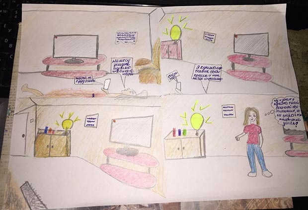 На практичному занятті студенти спробували самостійно скласти власні комікси та проробити власні страхи. Студенти отримали не лише корисні знання, а і наповнились позитивними емоціями.