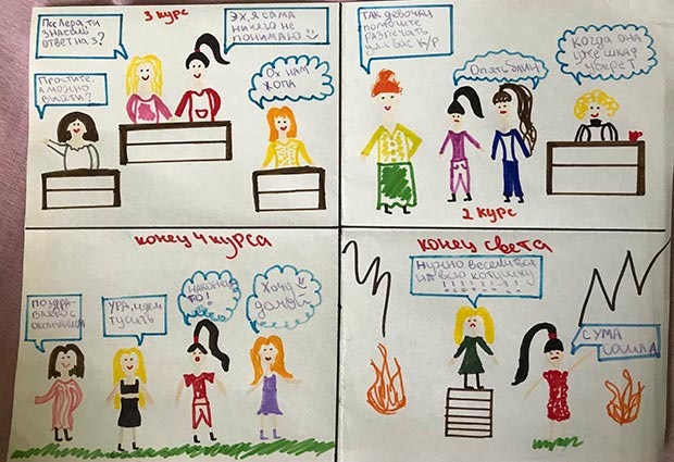 В рамках вивчення дисципліни «Основи психосоматики» доктором філософії в галузі психології Бальбузою Оленою Миколаївною зі студентами 3 курсу було проведено практичне заняття на тему: «Використання методу коміксів у терапії психосоматичних захворювань».