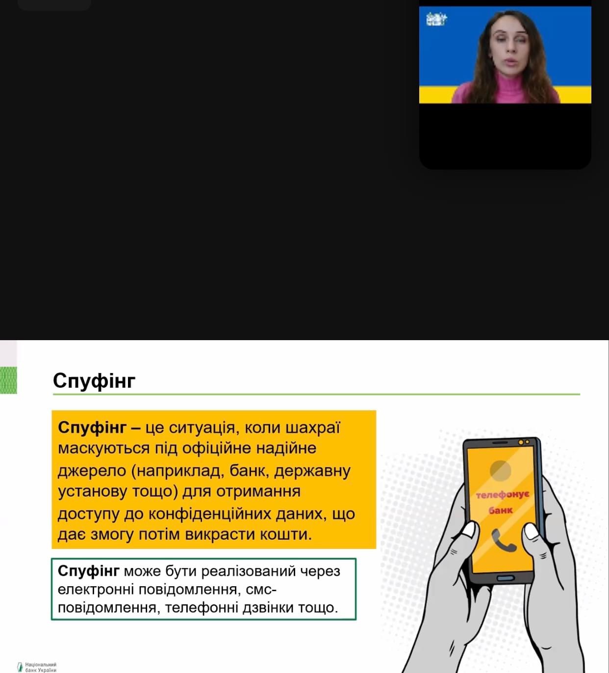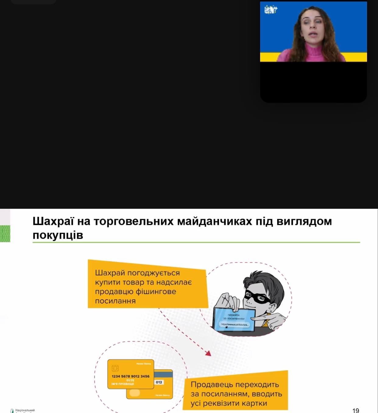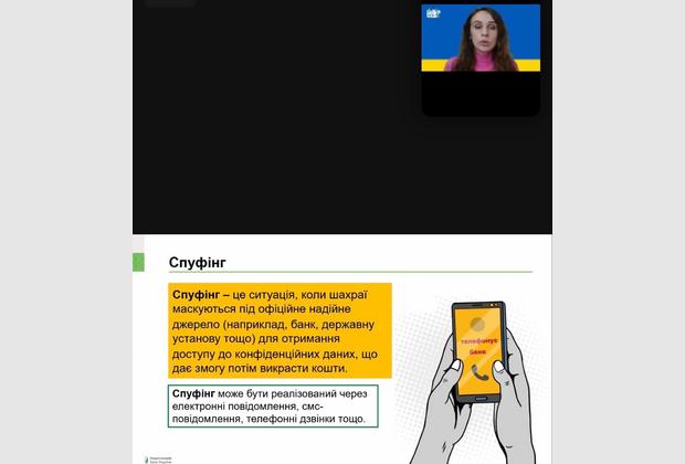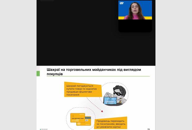 Учасники вебінару активізували знання щодо найпоширеніших сценаріїв шахрайства у воєнний час; правил безпеки у кіберпросторі, про заходи щодо захисту свого банківського рахунку, дізналися як вберегтися від фішинку та захистити свій гаджет у разі його викрадення.