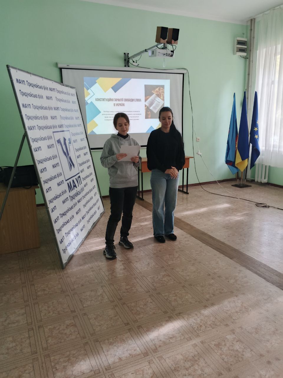 Завершальним етапом Тижня права у Придунайській філії ПрАТ «ВНЗ «МАУП» стало проведення 10 жовтня 2025 р. міжінституційного навчально-дискусійного семінару «Що важливіше: свобода слова чи захист від дезінформації?», до якого долучилися також здобувачі освіти ВСП «Дунайський інститут водного транспорту Національного транспортного університету».