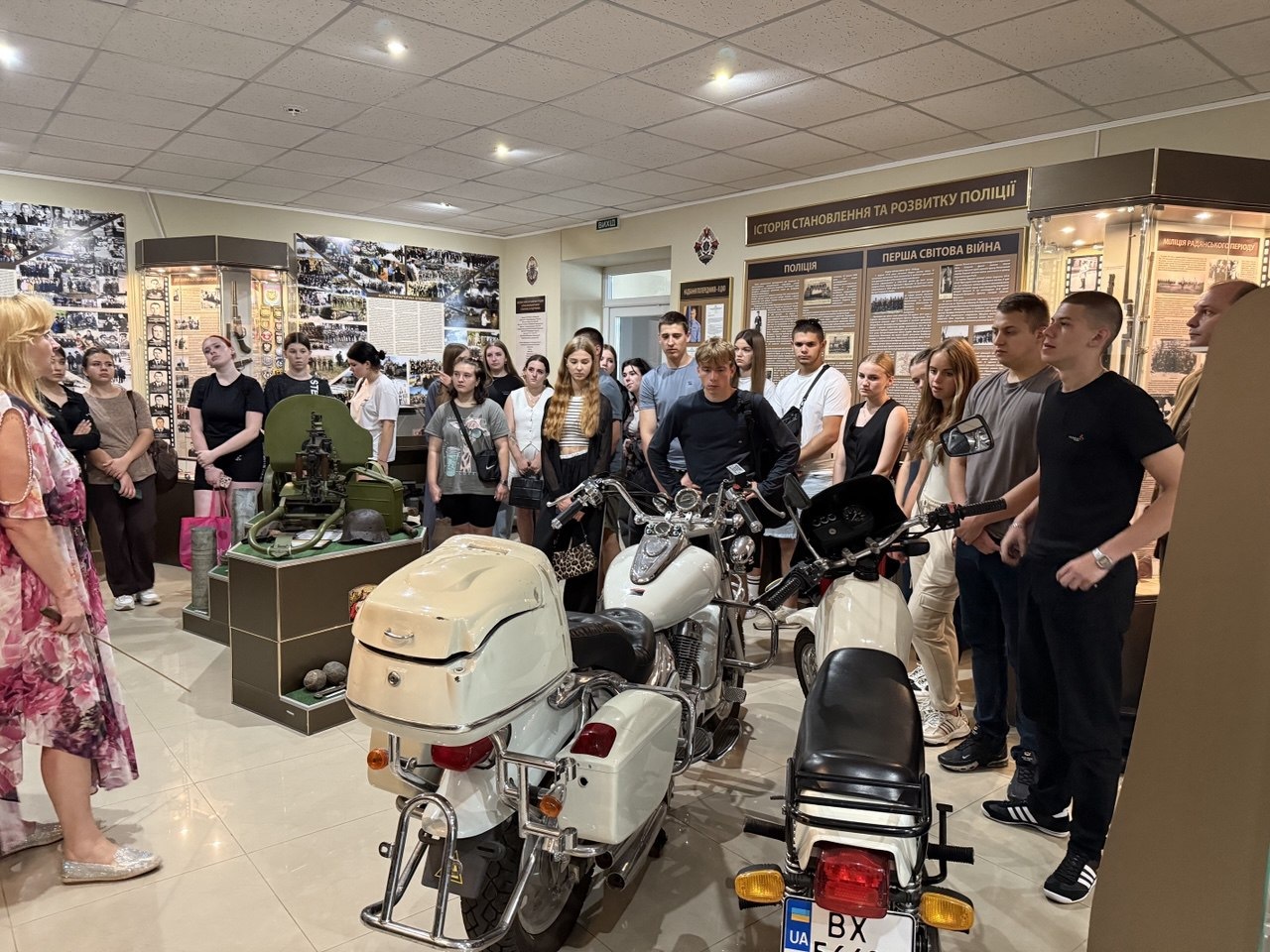 Під час змістовної та цікавої екскурсії майбутні бакалаври-правоохоронці мали можливість познайомитися з історією розвитку та становлення правоохоронних органів, починаючи з часів діяльності царської поліції і до сьогодення. Серед численних експонатів музею особливий інтерес викликали унікальні зразки вогнепальної та холодної зброї, рідкісної спеціальної техніки, засобів зв’язку, спорядження, зразки форменого одягу різних історичних періодів, фотографії та документи перших співробітників силових структур Поділля, архівні документи, службовий мотоцикл «ІЖ», зразки форменого одягу та засоби зв'язку.