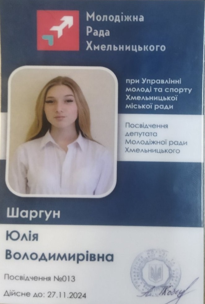 Представниця Студентської ради Хмельницького інститут МАУП Юлія Шаргун взяла участь у IV Сесії Молодіжної ради Хмельницького