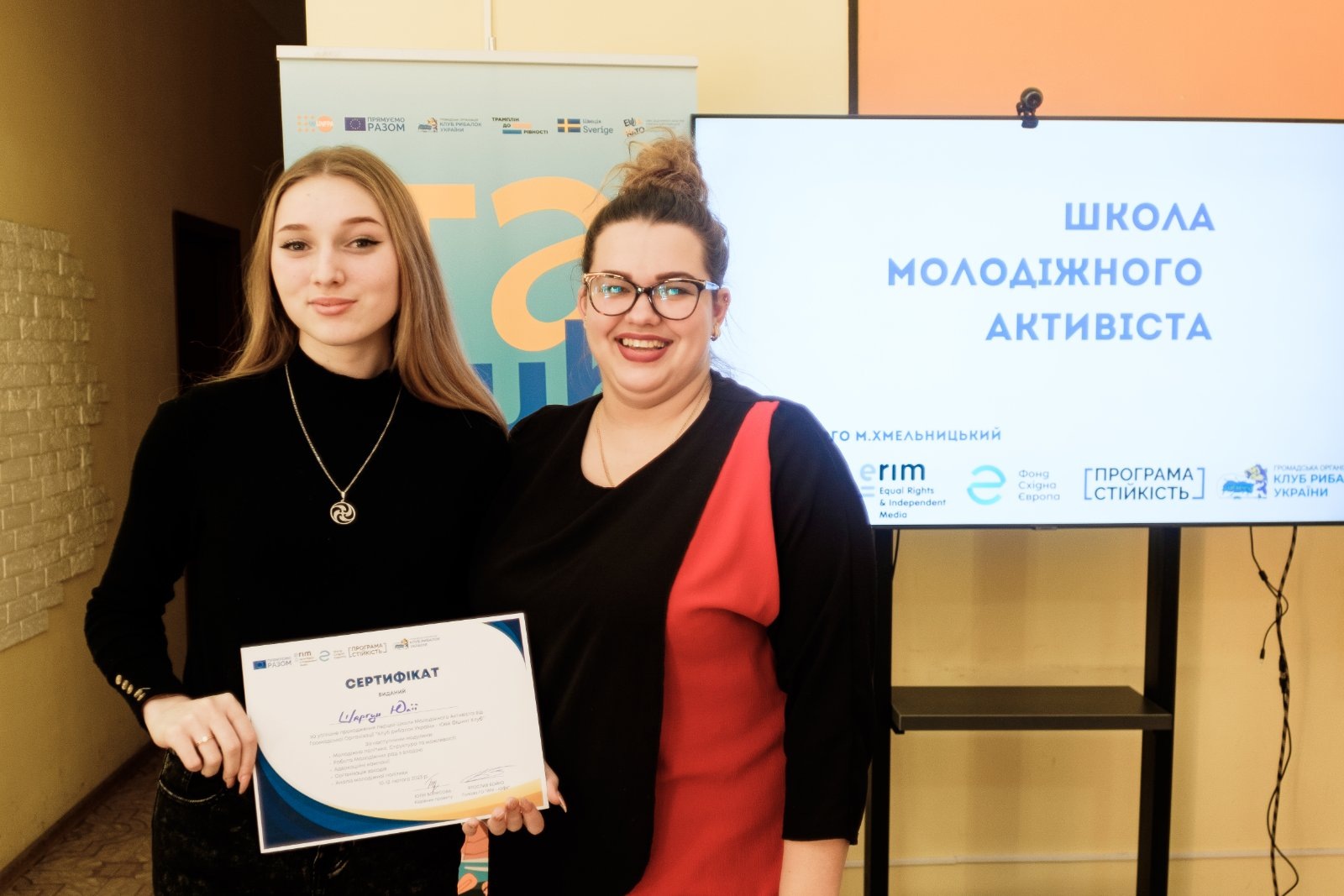Юлія взяла участь у тренінгах для депутатів молодіжної ради Хмельницького. Отримала сертифікат за успішне проходження першої школи Молодіжного Активіста.