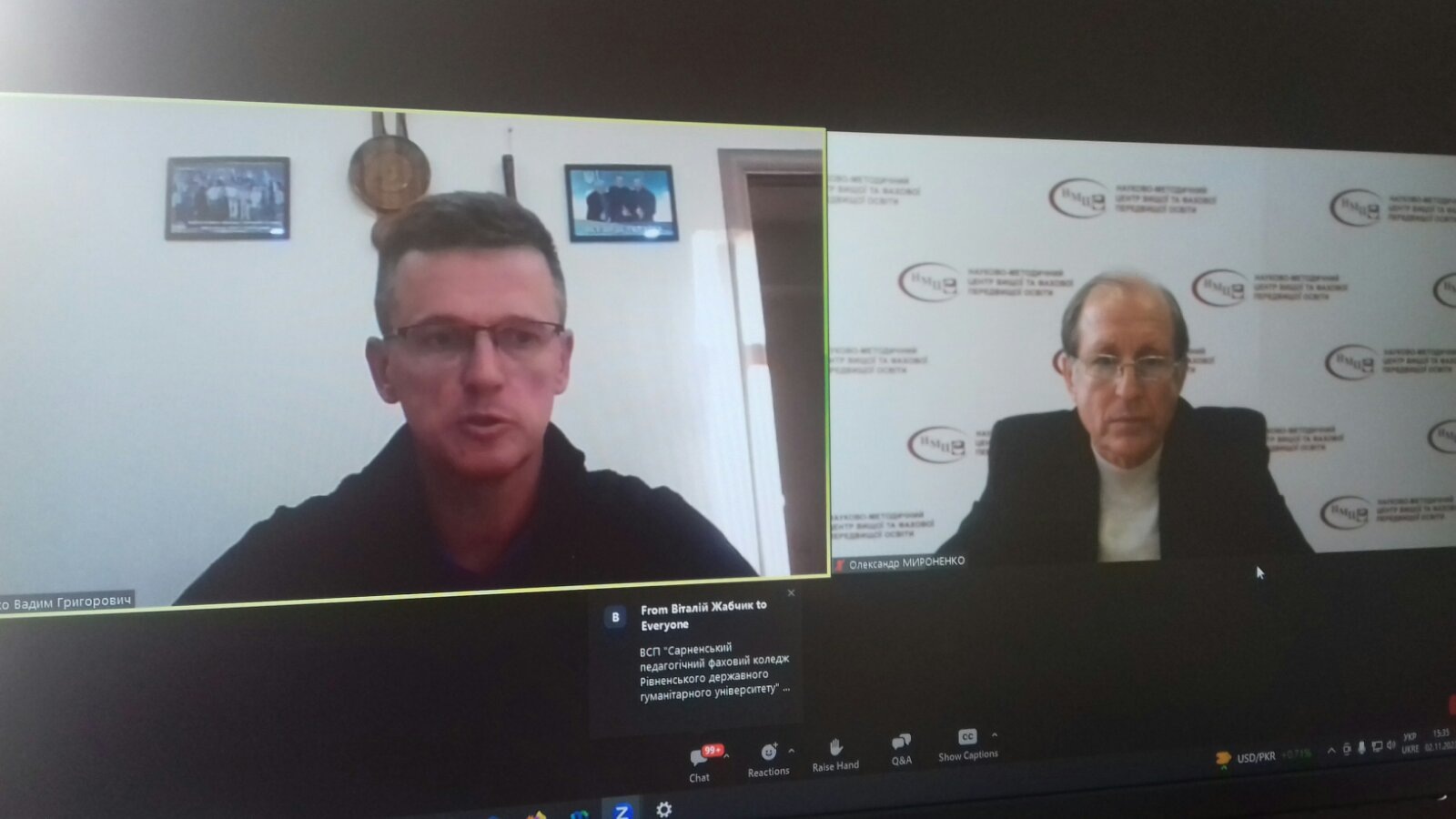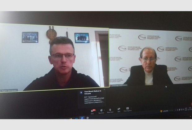 У зазначеній он-лайн нараді прийняли участь декан гуманітарно-економічного факультету Хмельницького інституту МАУП Осмолян В.А. та педагог-організатор Хмельницького економіко-правового фахового коледжу Доротюк О.М.