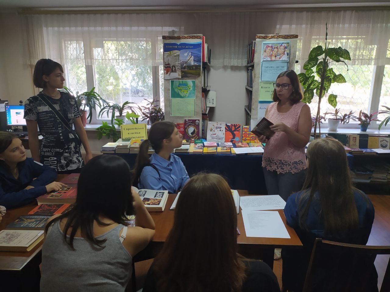 Завідувачка бібліотеки С.П.Косійчук провела огляд тематичних книжкових виставок «Загадковий і неповторний світ античної літератури», «Європейська класика українською», «Нова українська книга нового століття».