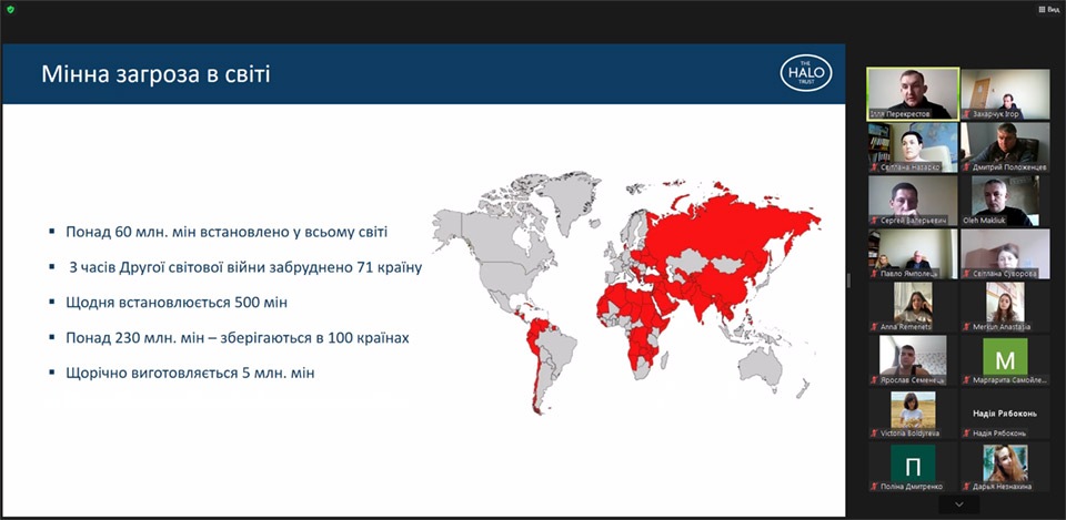 14.11.2022 р. в Північноукраїнському інституті імені героїв Крут ПрАТ «ВНЗ «МАУП» відбулась інформаційно-роз’яснювальна онлайн зустріч з американсько-британською організацією Hazardous Area Life-support Organization - HALO на тему «Принципи безпеки під час збройного конфлікту»