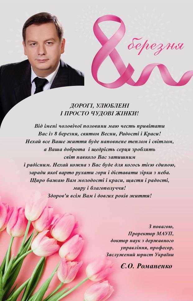 Привітання Проректора Романенка Є.О. з 8 березня!