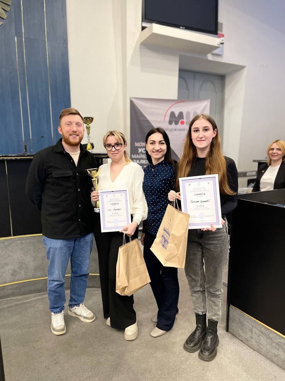 Студенти Хмельницького економіко-правового фахового коледжу МАУП Інна Полончук, Роксолана Єрмолова, Андріана Найчук, Владислав Кісілевич, Катерина Плескачова та Аліна Дячук взяли участь у дебатному турнірі, що відбувся у форматі засідань британського парламенту.
