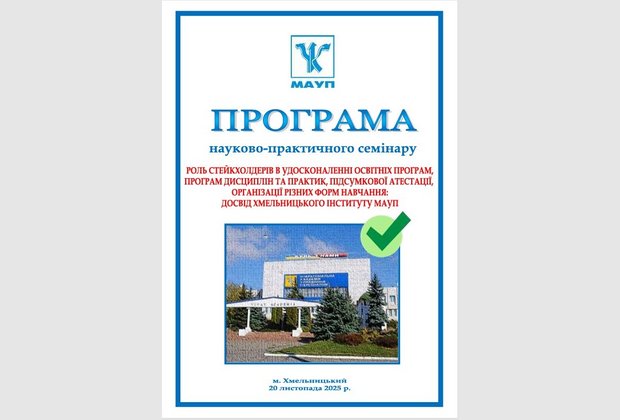 20 листопада 2025 року у Хмельницькому інституті МАУП відбувся науково-практичний семінар «РОЛЬ СТЕЙКХОЛДЕРІВ В УДОСКОНАЛЕННІ ОСВІТНІХ ПРОГРАМ, ПРОГРАМ ДИСЦИПЛІН ТА ПРАКТИК, ПІДСУМКОВОЇ АТЕСТАЦІЇ, ОРГАНІЗАЦІЇ РІЗНИХ ФОРМ НАВЧАННЯ: ДОСВІД ХМЕЛЬНИЦЬКОго ІНСТИТУТу МАУП».