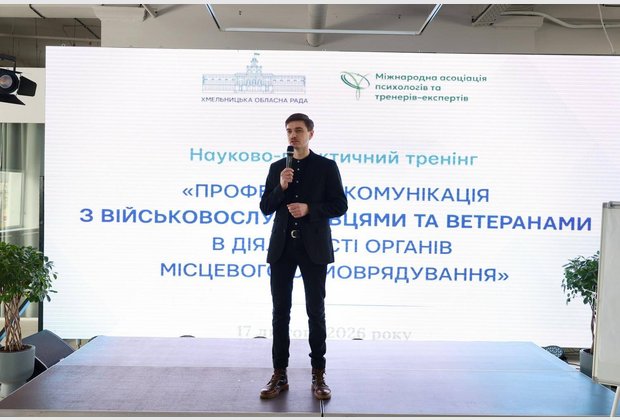 17 лютого 2026 року бакалаври-психологи 3 курсу денної форми навчання і старший викладач кафедри психології Хмельницького інституту МАУП Володимир Прінц взяли участь у науково-практичному тренінгу «Професійна комунікація з військовослужбовцями та ветеранами в діяльності органів місцевого самоврядування».