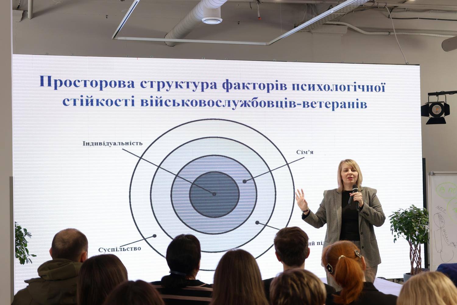 Фахівчиня під час свого виступу акцентувала, що суспільство має бути готовим до повернення ветеранів, а це приблизно понад 2 мільйони осіб.