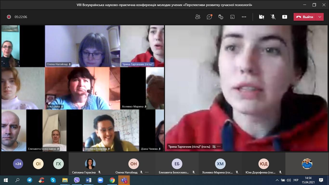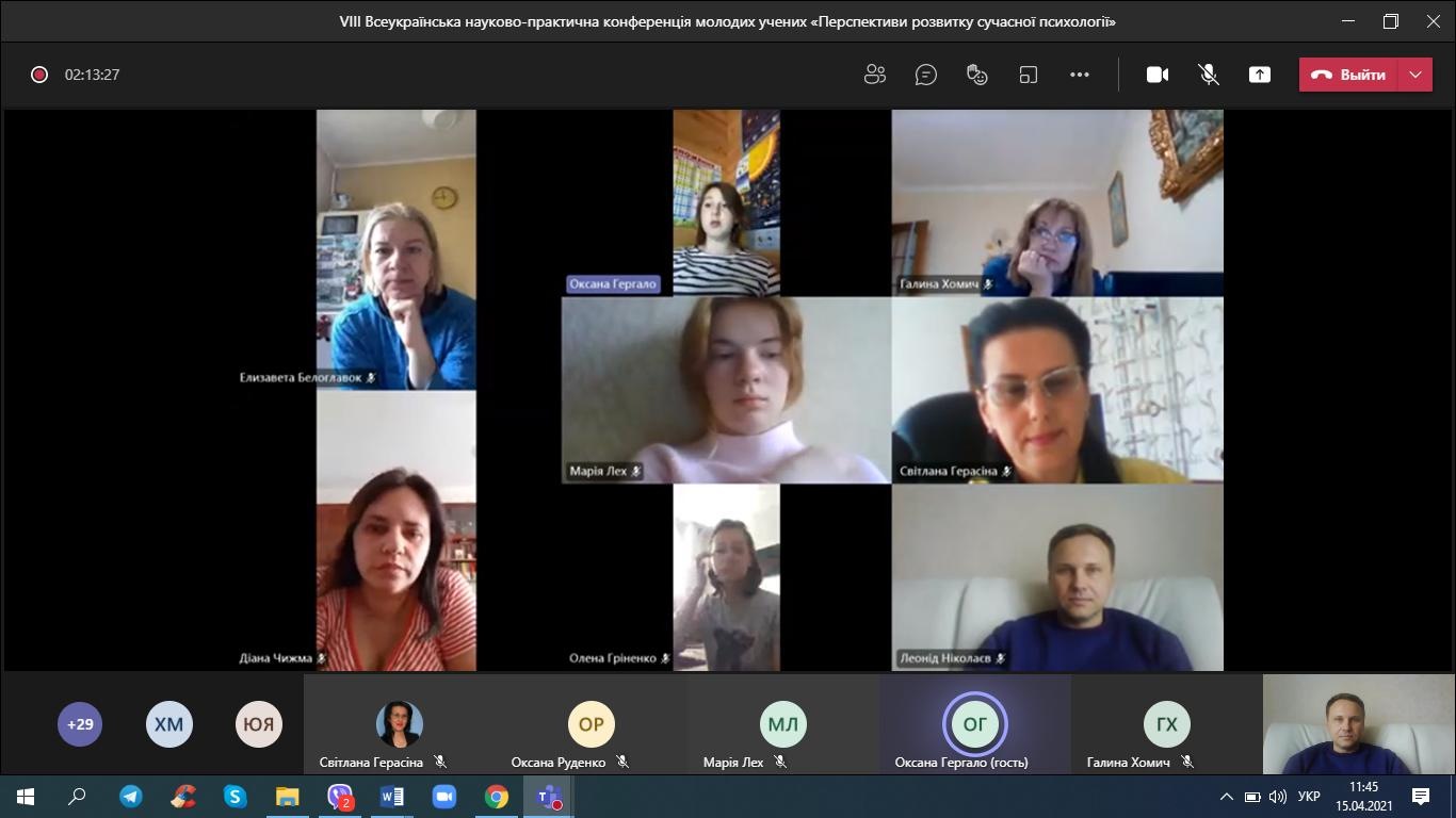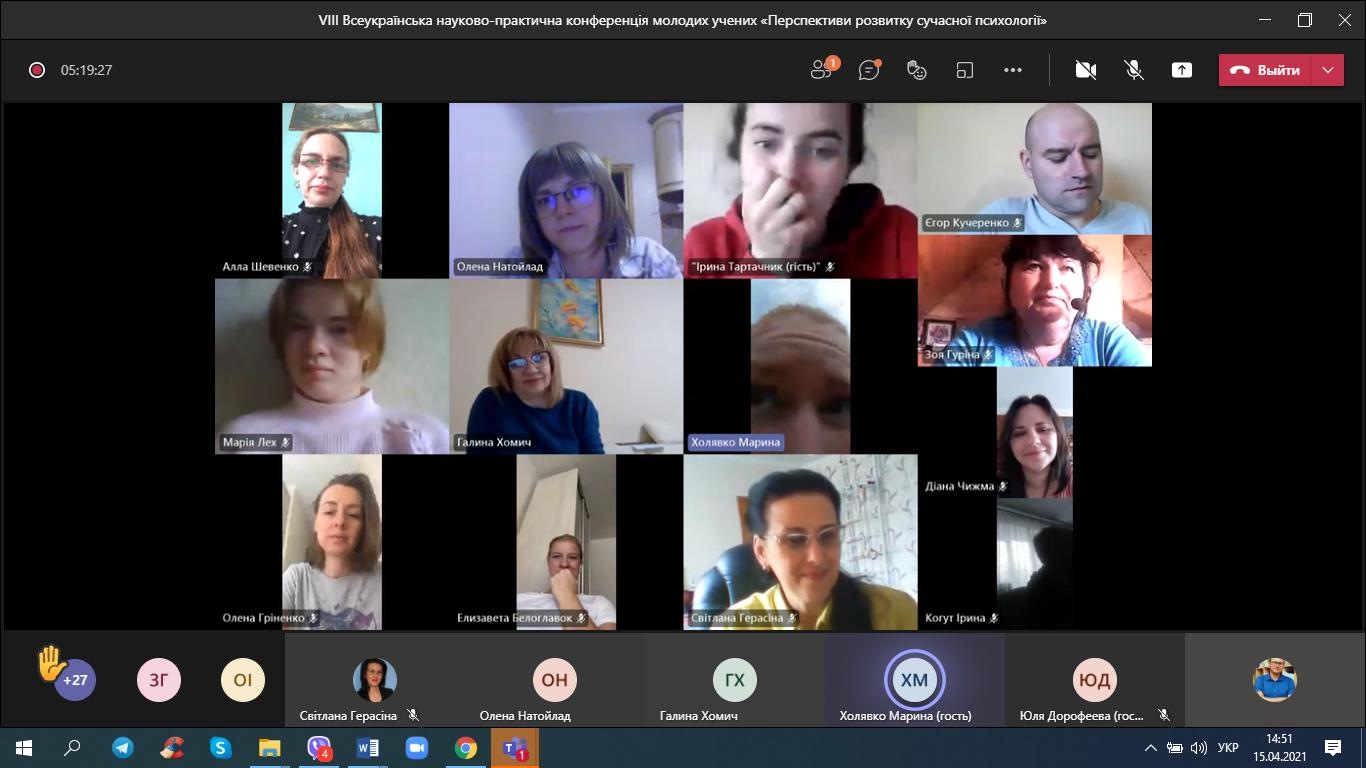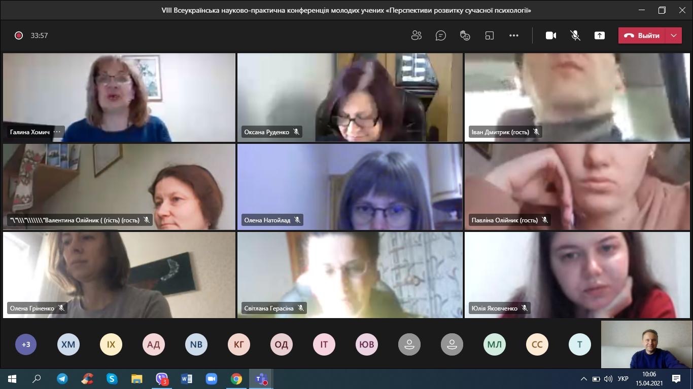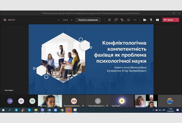 15 квітня 2021 року студенти-психологи та викладачі кафедри психології взяли онлайн-участь у VІІІ Всеукраїнській науково-практичній конференції молодих учених «Перспективи розвитку сучасної психології».