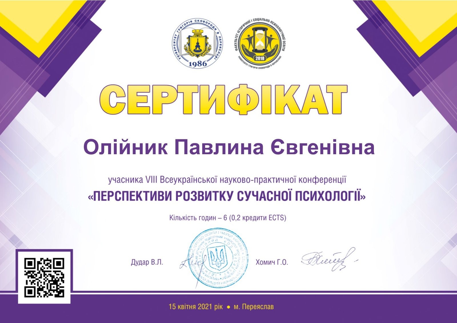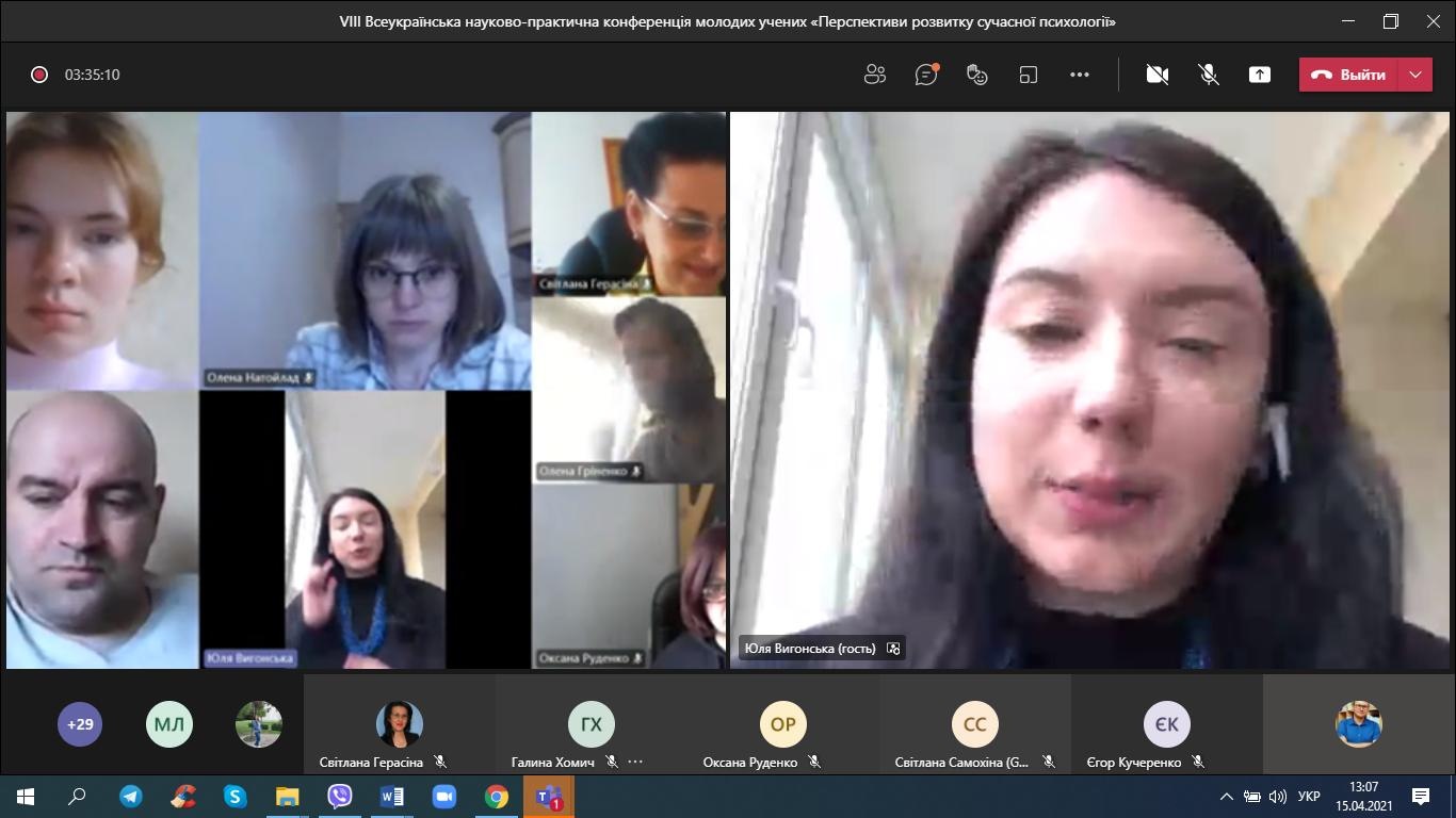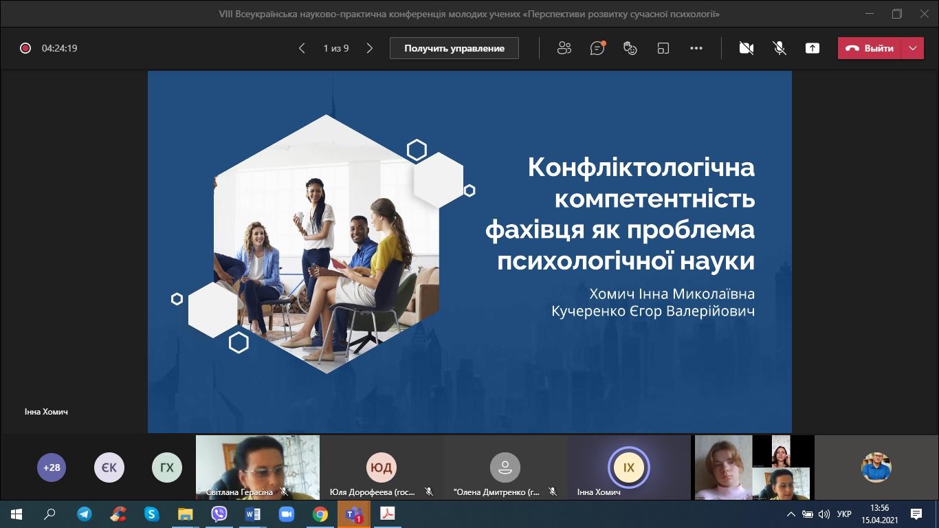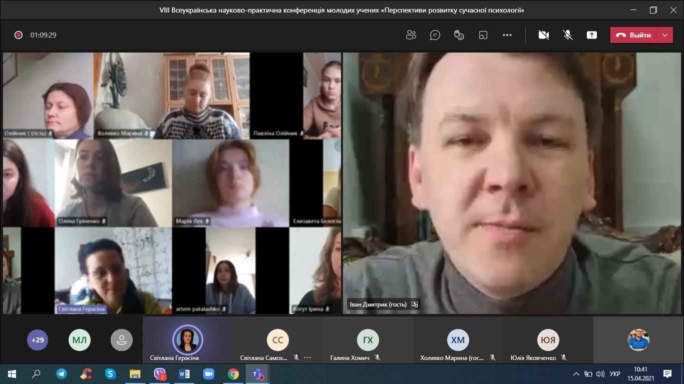 15 квітня 2021 року студенти-психологи та викладачі кафедри психології взяли онлайн-участь у VІІІ Всеукраїнській науково-практичній конференції молодих учених «Перспективи розвитку сучасної психології».