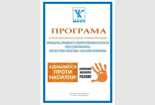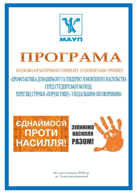 У Хмельницькому інституті МАУП відбувся науково-практичний семінар з елементами тренінгу «Профілактика домашнього та гендерно зумовленого насильства серед студентської молоді. Перегляд стрічки «Поруш тишу» з подальшим обговоренням»