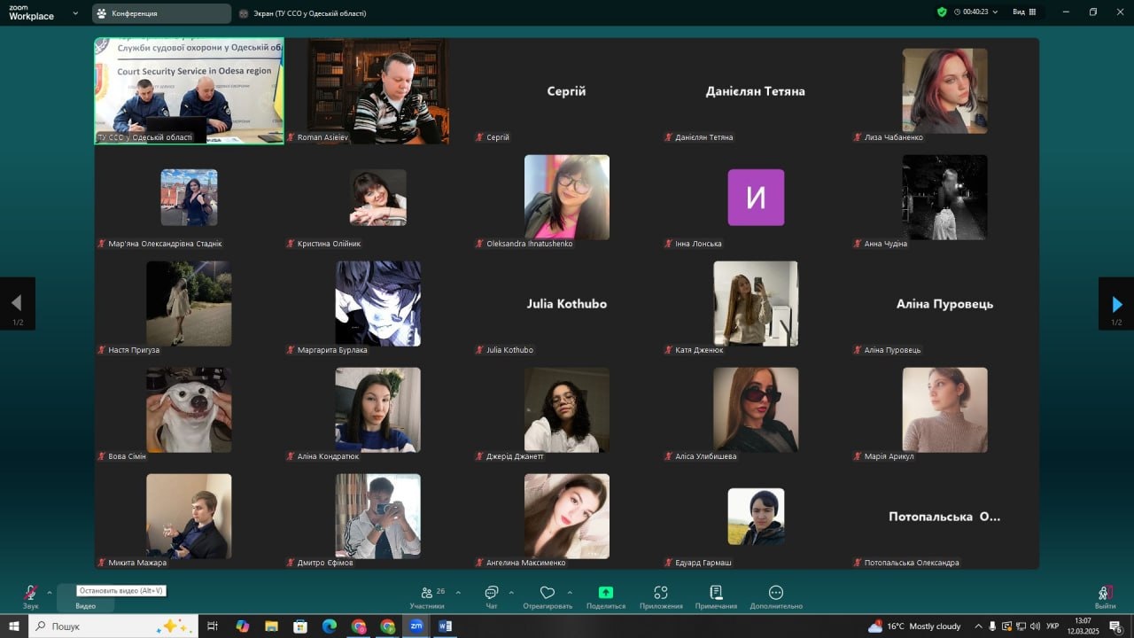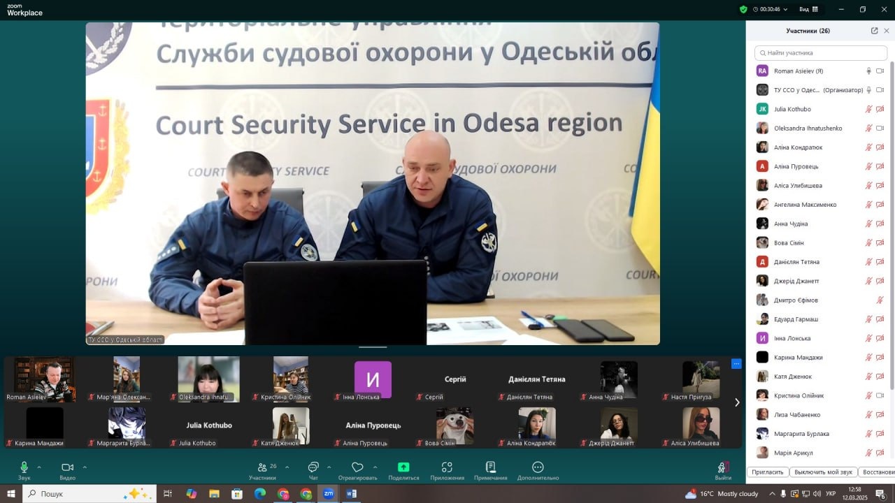 12 березня 2025 року в Одеському інституту ПрАТ «ВНЗ «МАУП» відбулася гостьова лекція на тему: «Служба судової охорони – державний орган в системі правосуддя», яку на запрошення адміністрації інституту для здобувачів освіти провели – командир підрозділу особистої безпеки суддів територіального управління Служби судової охорони в Одеській області, капітан Служби судової охорони Чорногуз Віталій Віталійович та головний спеціаліст (командир відділення) 1-го відділення особистої безпеки суддів територіального управління Служби судової охорони в Одеській області, капітан Служби судової охорони Стець Андрій Дмитрович.