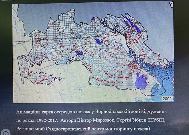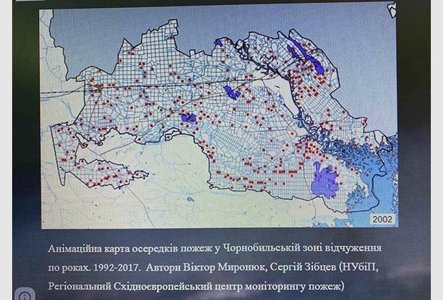Студенти ознайомилися з онлайн-виставкою «ВОГОНЬ ЧОРНОБИЛЯ. 1986-2021», яка показує сучасний стан Зони відчуження та загроз, які несуть пожежі, що виникають на покинутих людьми землях північного Полісся.