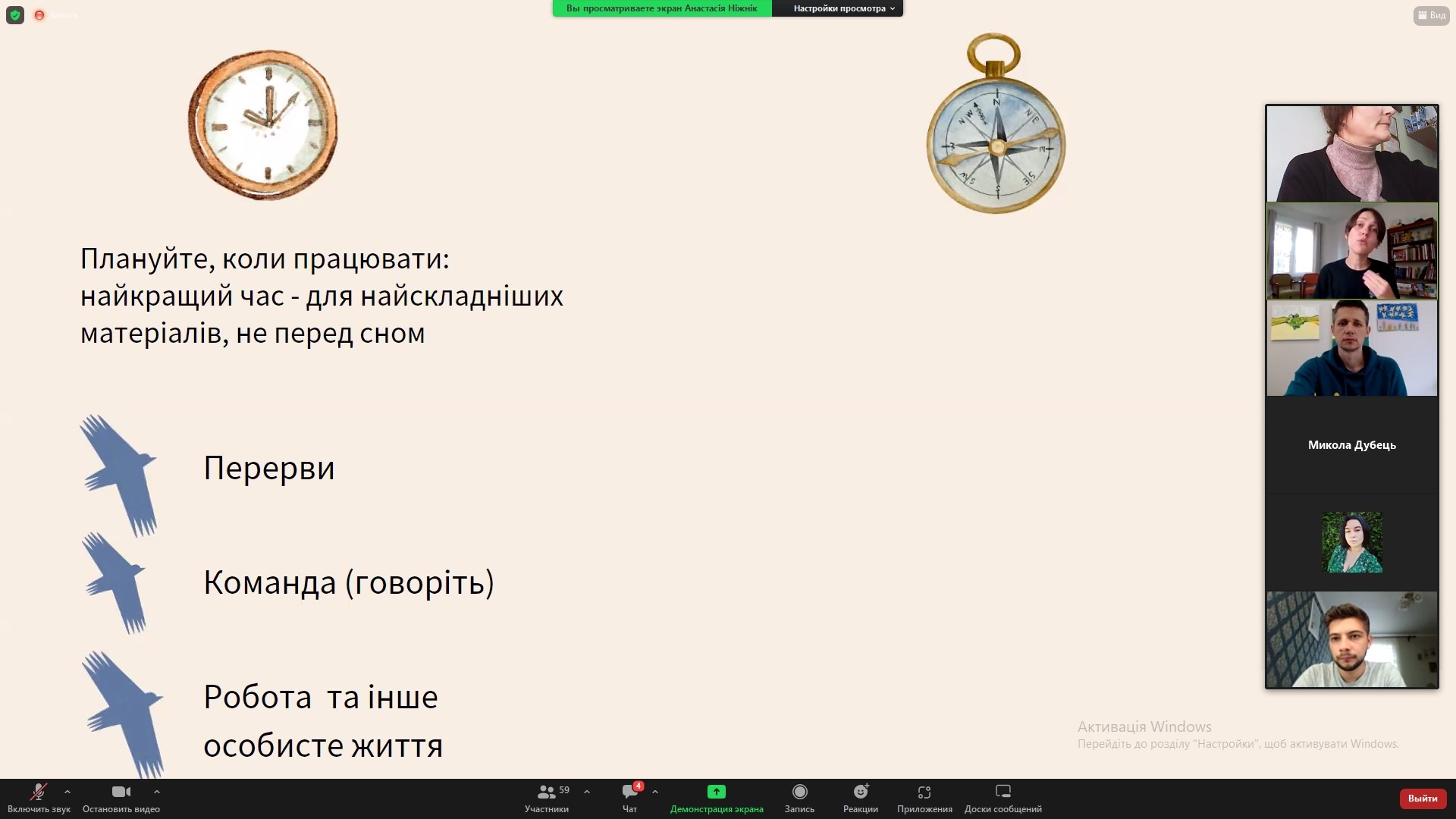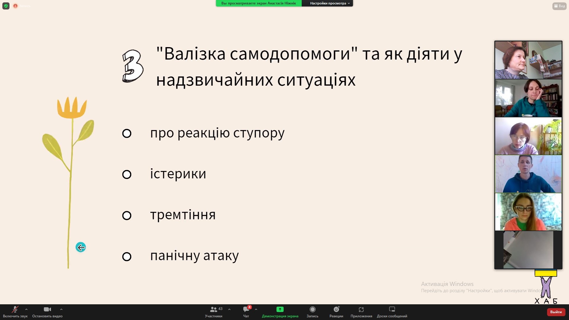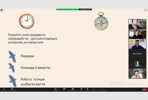 Викладачі кафедри психології взяли участь у курсі «Як працювати з травматичним контентом і зберігати психічне здоров’я», що організувала команда Хаб стійкості для журналістів та фахівців, які документують воєнні злочини. Відбулися тематичні зустрічі: 1 жовтня – «Як працювати з травматичними матеріалами (фото, відео), проводити інтерв’ю та висвітлювати біль»; 4 жовтня – «Базова самодопомога для психічного здоров’я. Маркери самопочуття, на які важливо звернути увагу»; 6 жовтня – «Як діяти у надзвичайних ситуаціях (про реакцію ступору, істерики, тремтіння, панічну атаку) та техніки саморегуляції.