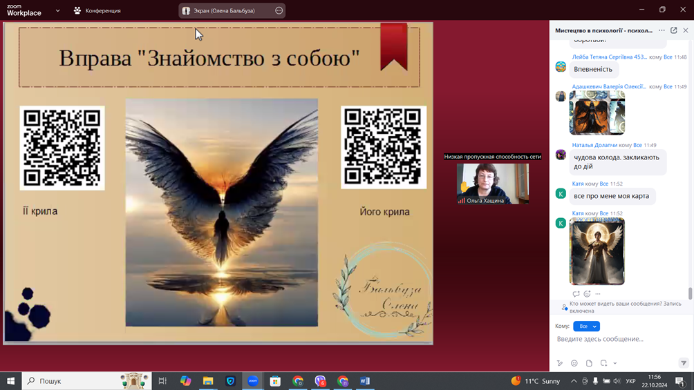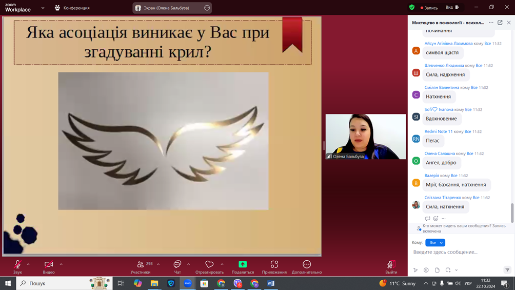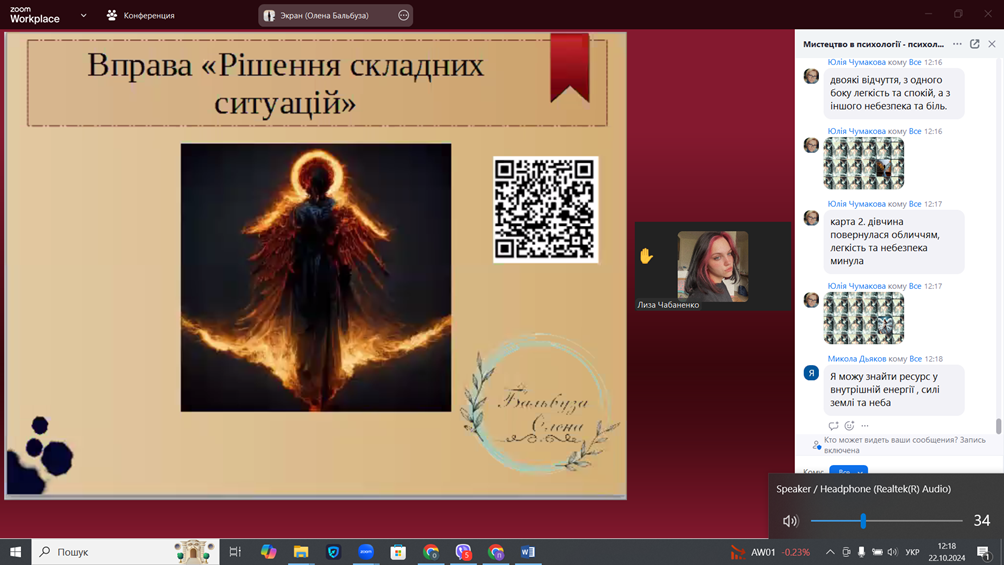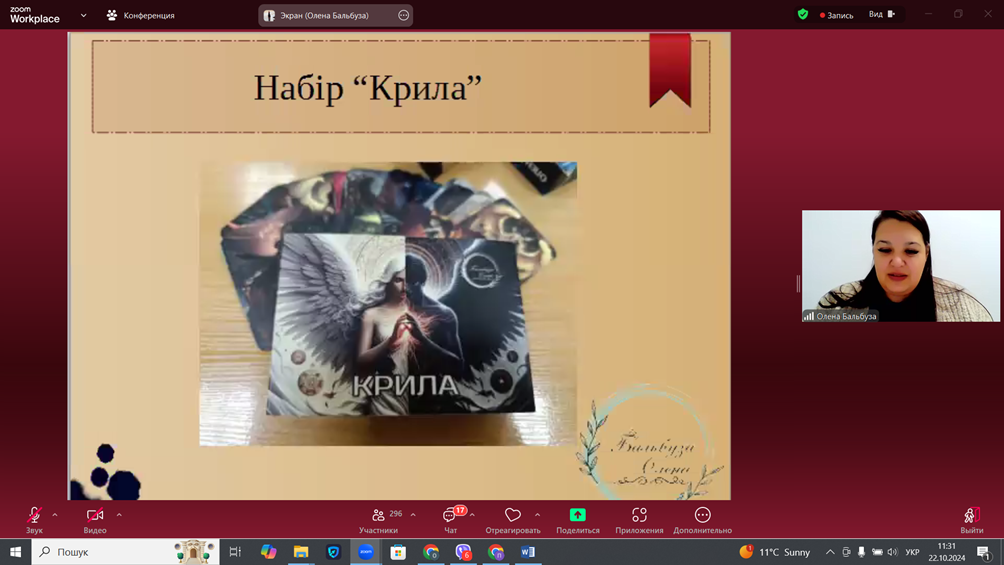 За допомогою авторських колод показано, як працюють психологи з запитами клієнтів, проведені демоверсії психологічних сесій з МАК, кожним учасником створено особистого метелика - символу народження, життя та трансформації; в онлайн режимі ознайомились з нейрографічним малюнком.
