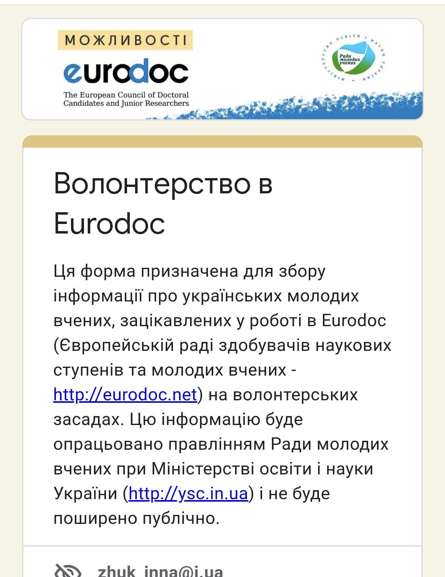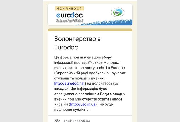 Eurodoc (http://eurodoc.net) - Європейська рада здобувачів наукових ступенів та молодих вчених, членом якої Україна є з 2014 року.