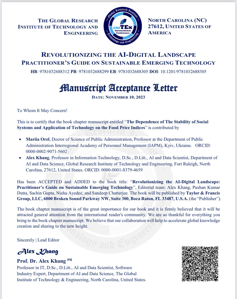 Дослідження професора кафедри публічного адміністрування Інституту управління, економіки та бізнесу МАУП М.Орел прийнято до друку у виданні, що входитиме у наукометричну базу Scopus.