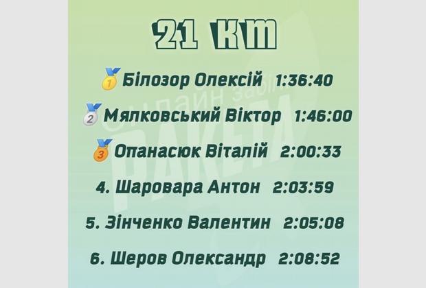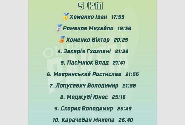 1 місце – Білозор Олексій (1 година, 36 хвилин, 40 секунд).