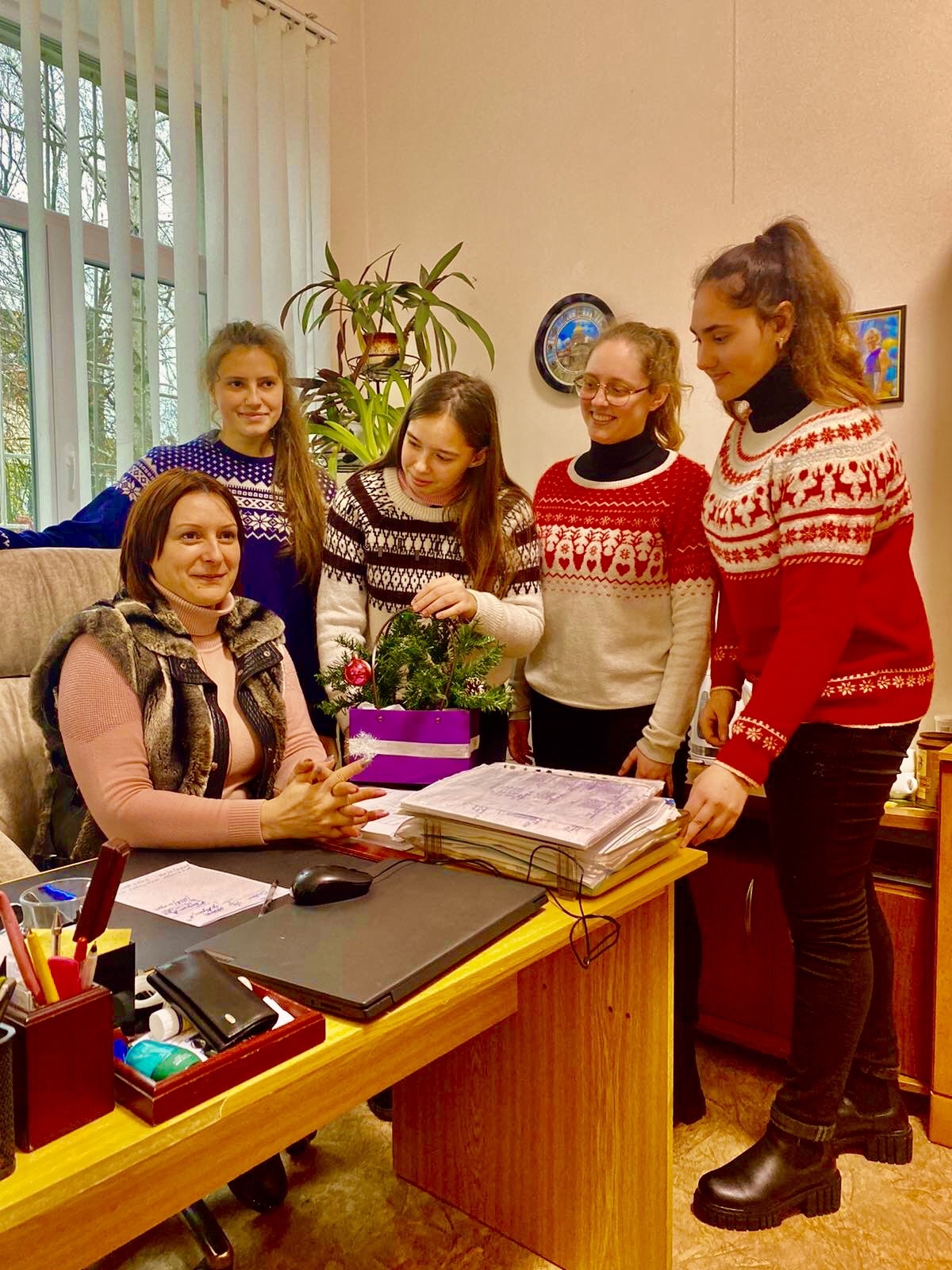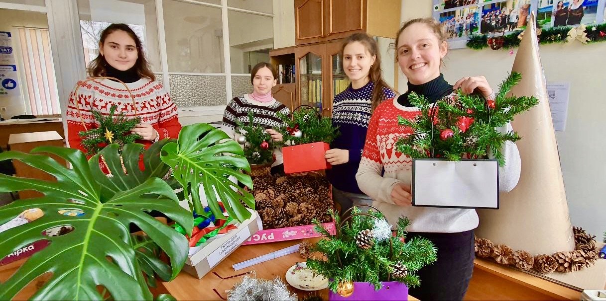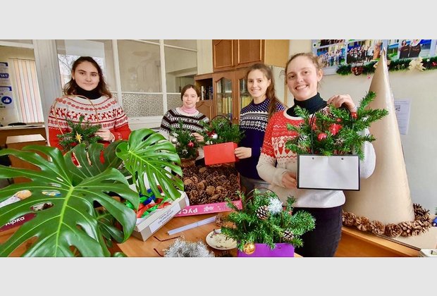 Проєктами цього року стали вироби з природного матеріалу. В умілих руках Анастасії Стрижак, Анни Стогнієнко, Інни Набокової та Ірини Боцу виникли чудові ялинкові композиції, які дівчата подарували працівникам філії, вітаючи їх з Днем Святого Миколая.