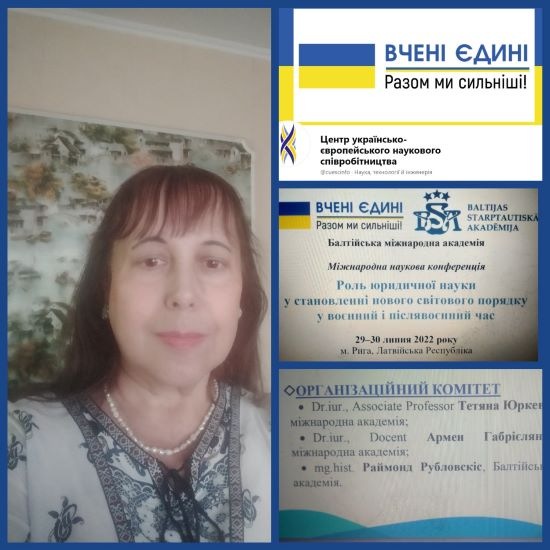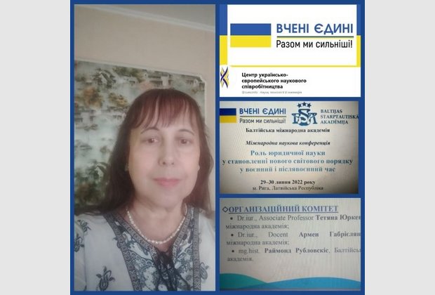 Доцент кафедри правових дисциплін Одеського інституту МАУП Олена Золотарьова взяла активну участь в Міжнародній науковій конференції "Роль юридичної науки у становленні нового світового порядку у воєнний і післявоєнний час", що відбулася дистанційно 29-30 липня 2022 року в м.Рига, Латвійська Республіка, ЄС.