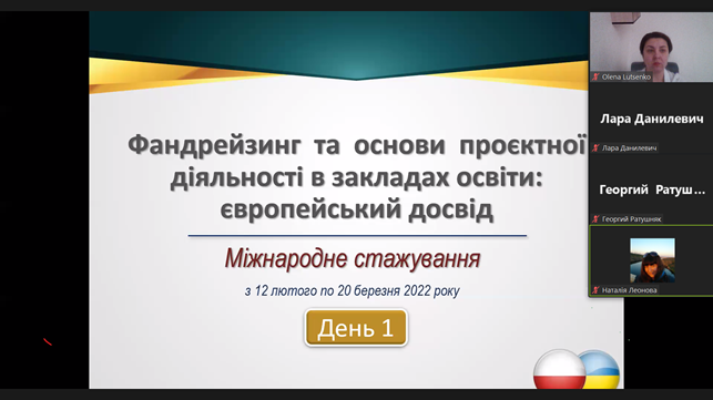 Розпочалося міжнародне стажування за програмою підвищення кваліфікації "Фандрейзинг та організація проєктної діяльності в закладах освіти: європейський досвід"