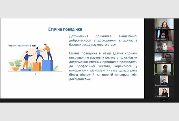 2.04.2021 р. відбувся вебінар на тему: «Принципи забезпечення академічної доброчесності у наукових дослідженнях». У заході взяли участь аспіранти, науково-педагогічні працівники Президентського університету МАУП та регіональних структурних підрозділів. Дякуємо за особливу активність представникам Хмельницького інституту МАУП. Спікер Капеліста Ірина, головний науковий співробітник Центру наукової роботи МАУП обговорила з учасниками такі питання: