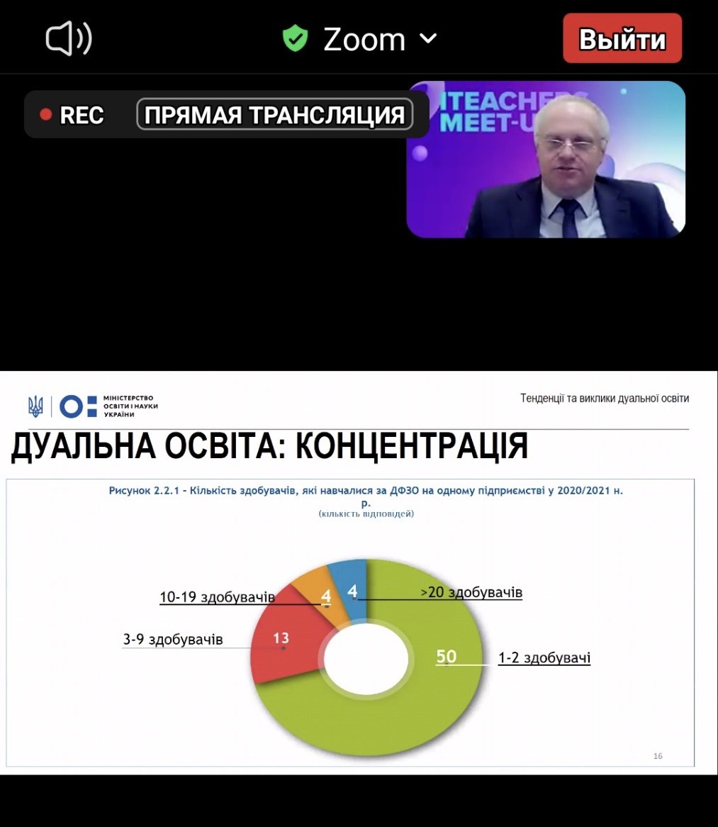 27.01.2022 року професор кафедри публічного адміністрування ННІУЕБ, доктор наук з державного управління Марія Григорівна Орел взяла участь у зустрічі ITeachers Meet-Ups для викладачів про дуальну освіту "Тенденції та виклики дуальної освіти". Спікерами були, зокрема, Олег Шаров, генеральний директор директорату фахової передвищої, вищої освіти Міністерства освіти та науки України; Юрій Рашкевич, член Національного Агентства кваліфікацій, член Національної Команди Експертів із реформування вищої освіти в Україні, тощо.