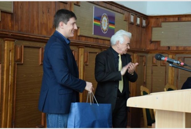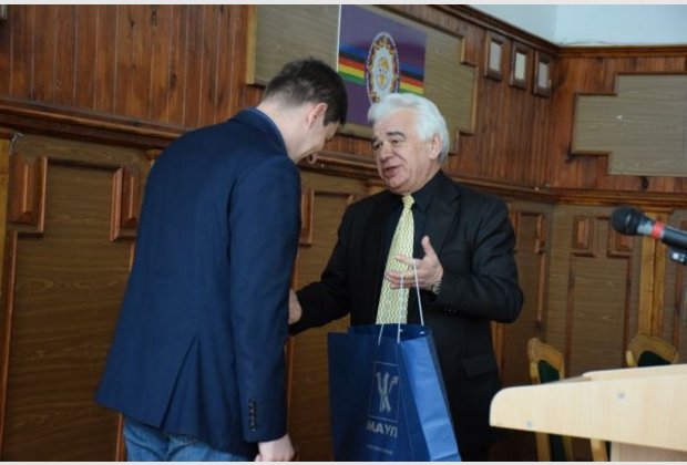 На згадку про зустріч ректор МАУП Микола Курко подарував гостеві книжки видавництва Академії.