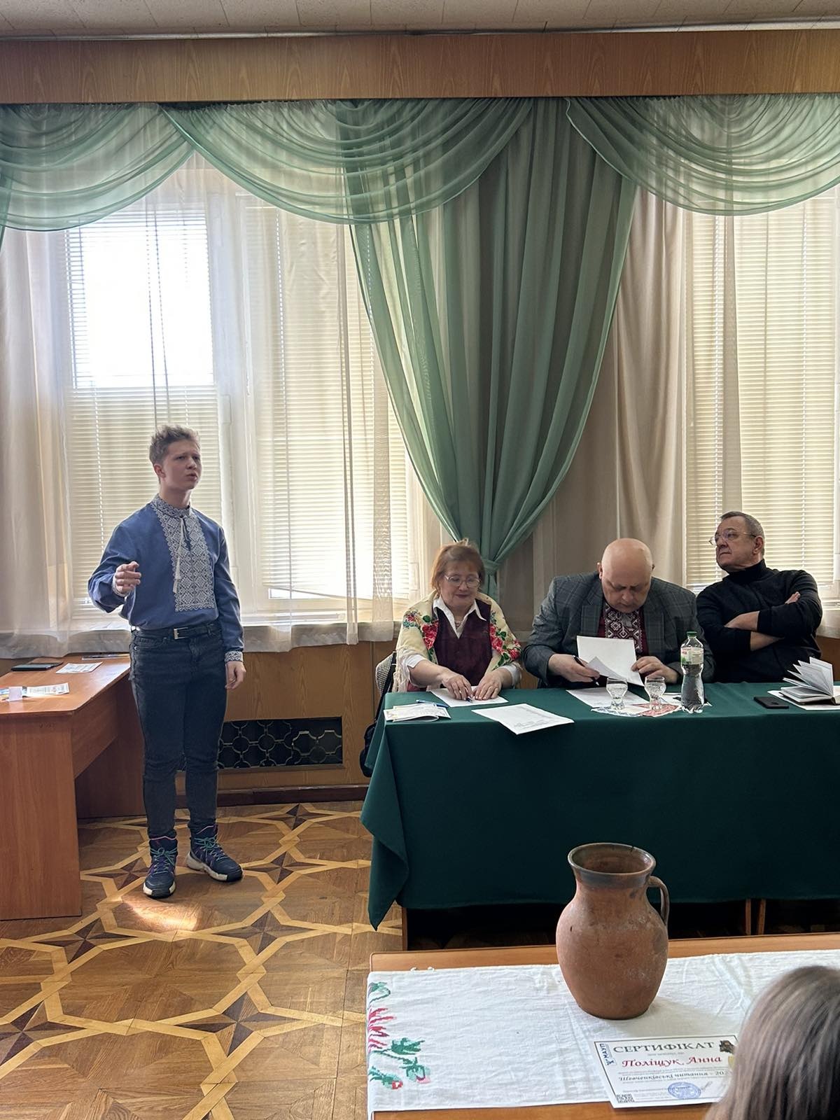 З вітальними промовами виступили: Міхалевський Віталій Цезарійович, поет-романтик, громадський діяч, голова Хмельницького обласного об’єднання товариства «Просвіта» імені Тараса Шевченка, член Національної спілки письменників України, член Національної спілки журналістів України. Доцент Хмельницького національного університету; Кропивницька Ганна Омелянівна, поетеса, літературознавиця, членкиня Хмельницької міської літературної спілки “Поділля”. Поети прочитали свої вірші, присвячені вшануванню пам’яті Тараса Шевченка.