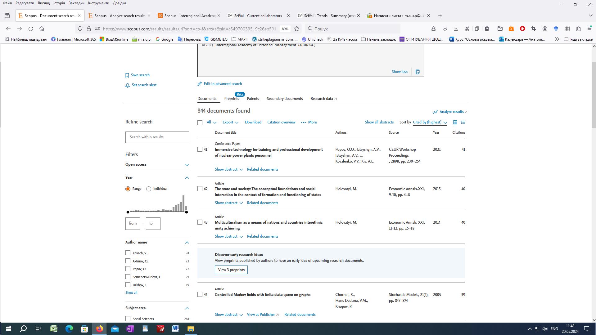Станом на 20 травня 2024 року Індекс Гірша Міжрегіональної Академії управління персоналом у Scopus зріс до позначки 41!