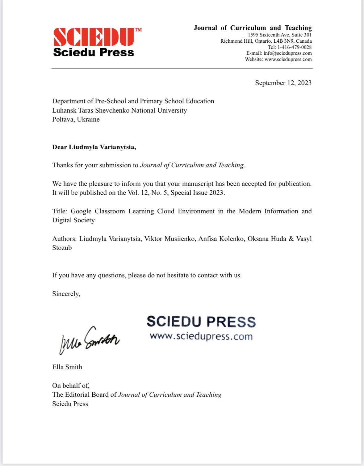 Наукові дослідження двох аспірантів кафедри публічного адміністрування Навчально-наукового інституту управління, економіки та бізнесу Віктора Мусієнка і Ростислава Симоненка прийнято до друку у виданні Journal of Curriculum and Teaching, що входить у наукометричних базу Scopus.