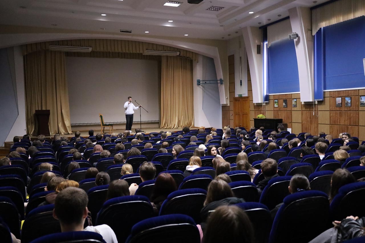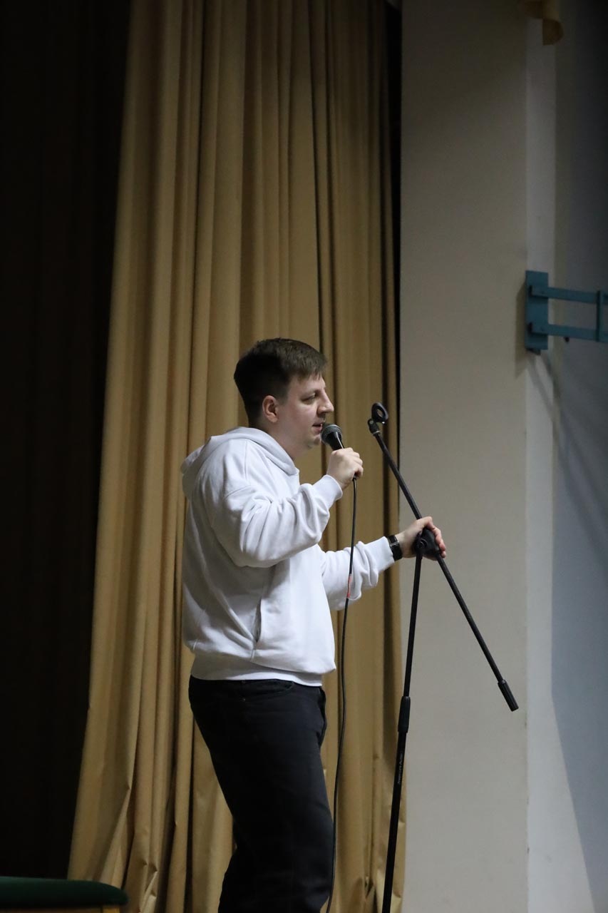 Виступ Олексія Приймаченка був побудований на сучасному гуморі та життєвих ситуаціях, близьких студентській аудиторії. Стендап задав легкий настрій у залі та пройшов у форматі живого спілкування з аудиторією. Подія стала гарною нагодою для студентів змінити звичний ритм навчання, відпочити та отримати заряд бадьорого настрою.