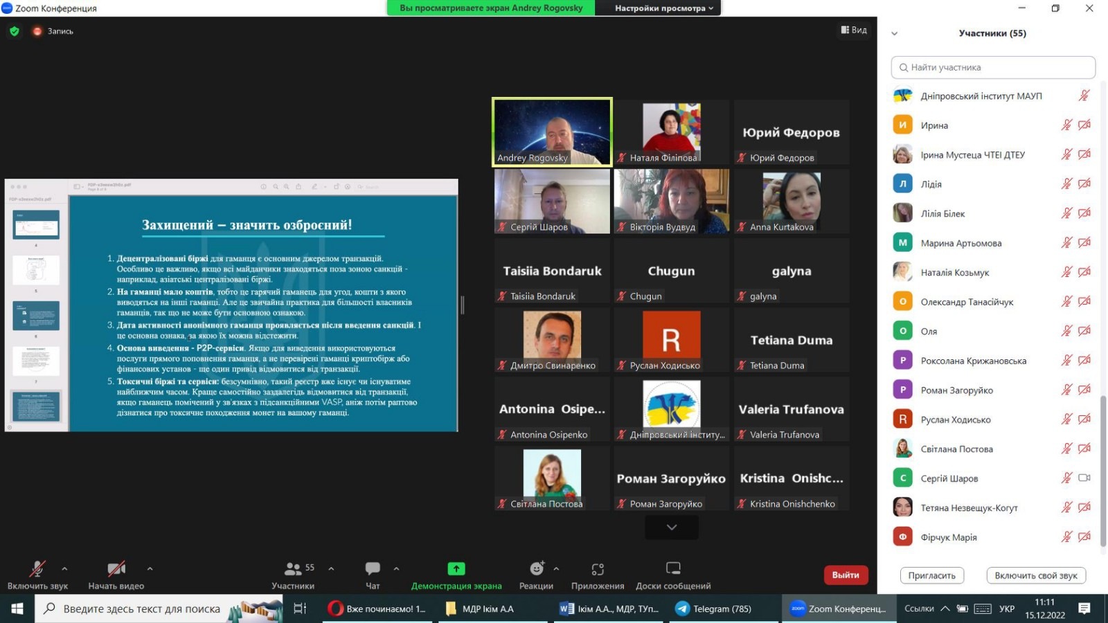 15 грудня 2022 р. науково-педагогічні працівники та здобувачі вищої освіти Придунайської філії ПрАТ "ВНЗ "МАУП" взяли участь у круглому столі «Використання криптовалюти у світі», організатором якого виступила ГО «Український народний контроль за діджіталізацією».