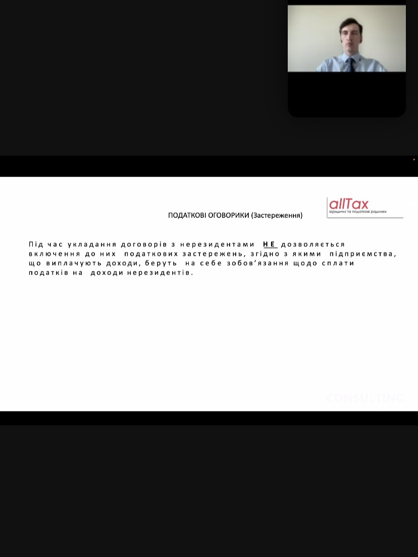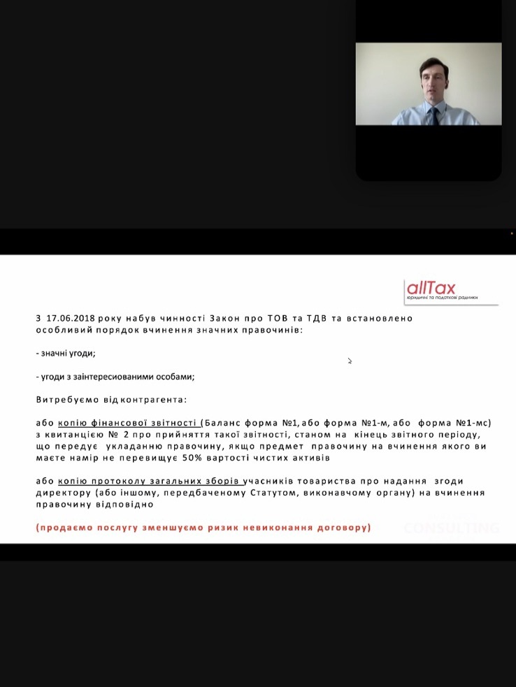 Під час заходу лектор розповів про особливості зовнішньоекономічних контрактів, форми, умови, порядок їх укладання. Відзначив специфіку роботи з контрагентами з іноземних країн та навів наочні приклади. Окрім того, учасники заходу обговорили особливості мінімізації ризиків для бізнесу при укладання контрактів, а також можливі форс-мажори в зовнішньоекономічній діяльності.
